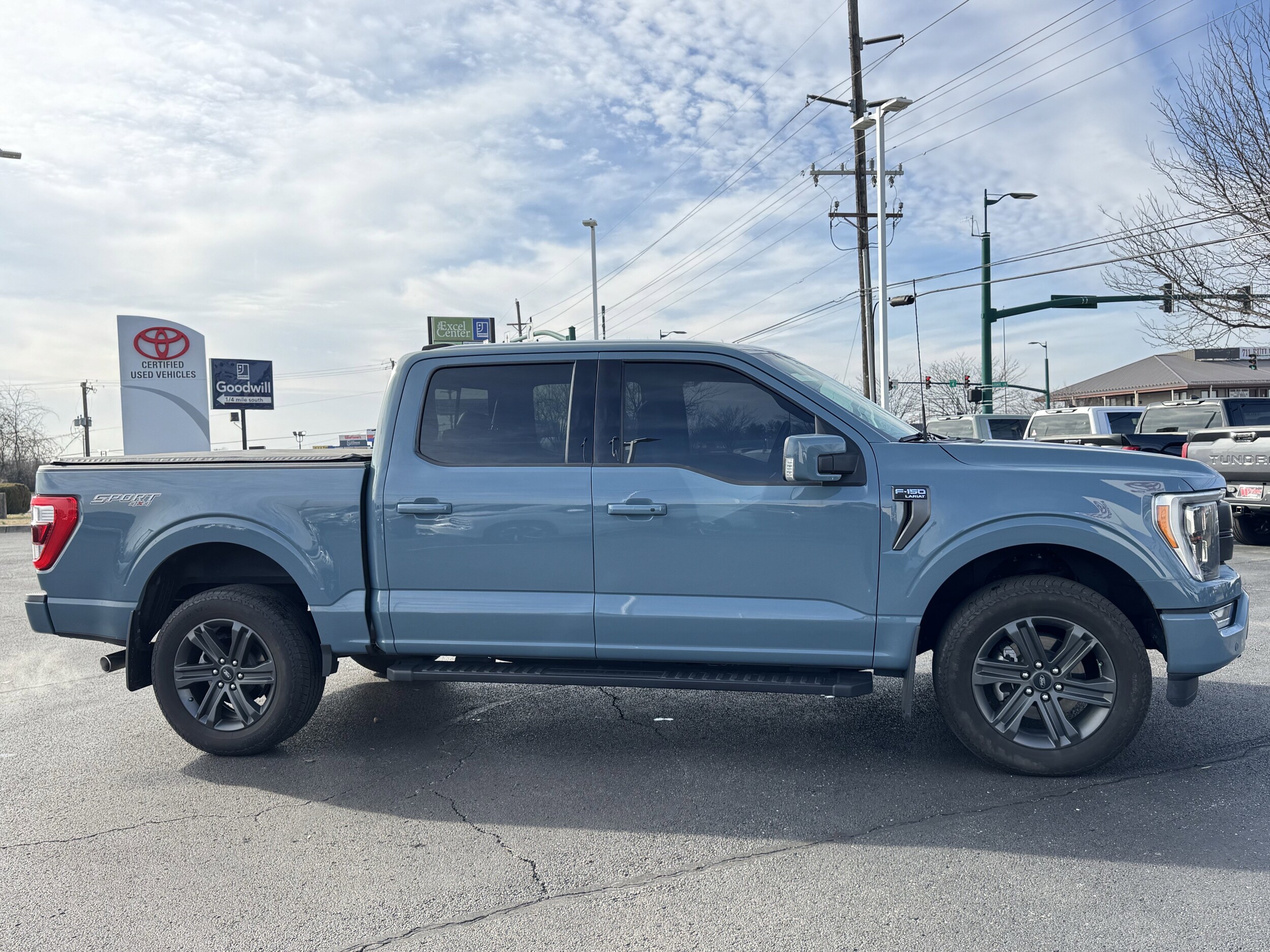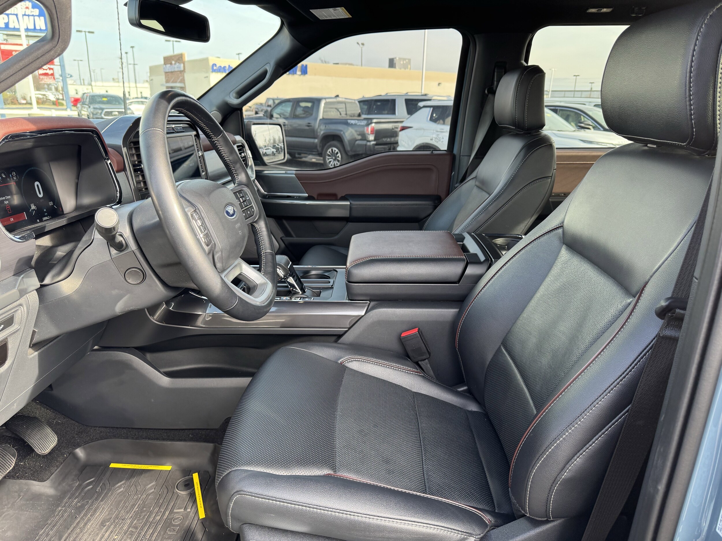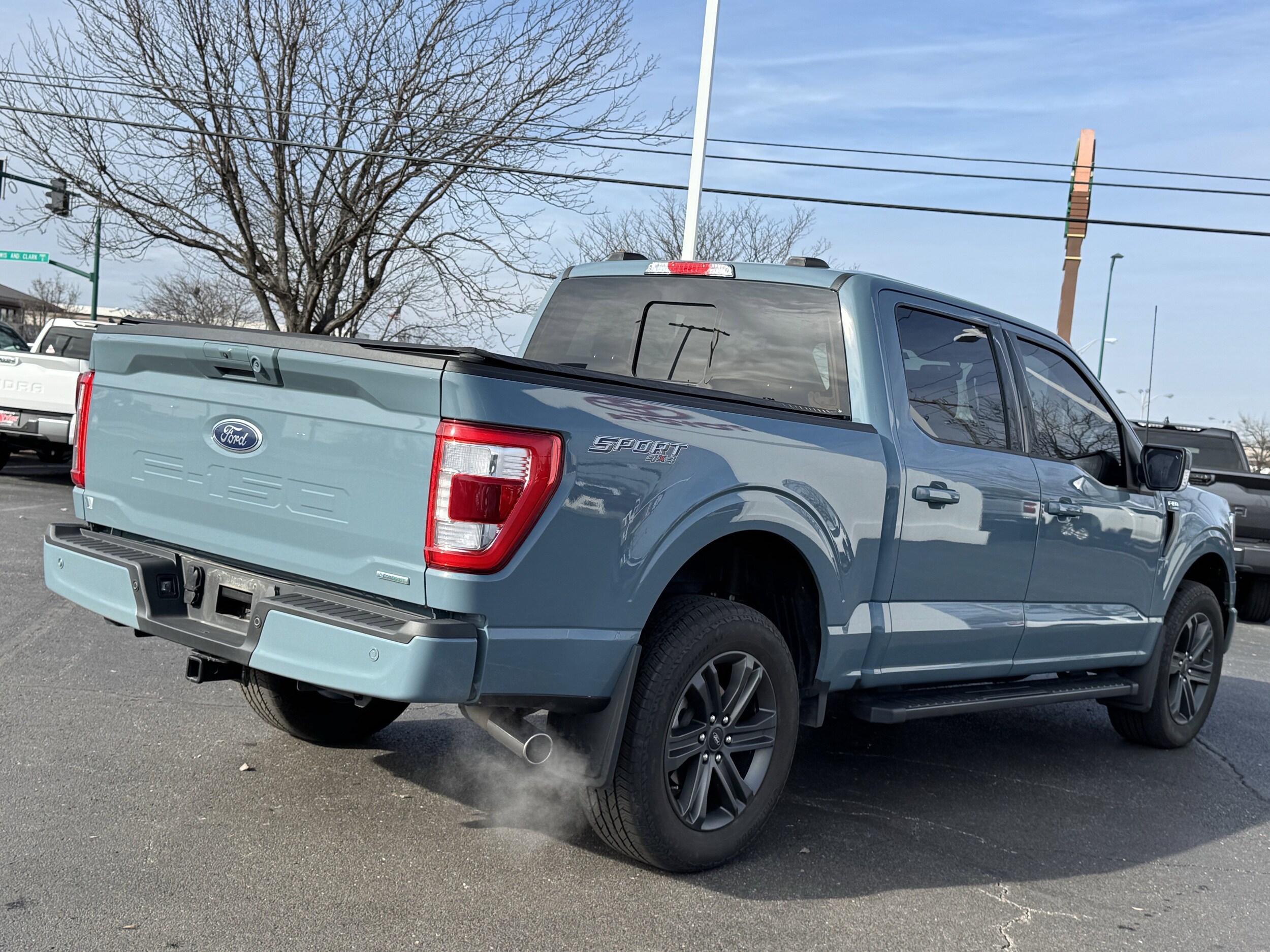 Recent Arrival! 4WD. Clean CARFAX. Equipment Group 502A High (Wireless Charging Pad), Ford Co-Pilot360 Assist 2.0 (Evasive Steering Assist and Intelligent Adaptive Cruise Control w/Stop & Go), Lariat Sport Appearance Package (Accent-Color Angular Step Bars, Body-Color Front & Rear Bumpers, Box Side Decals, Chrome Single-Tip Exhaust, and Dark 2-Bar & 1 Minor Bar Style Grille), Trailer Tow Package (Class IV Trailer Hitch Receiver, Integrated Trailer Brake Controller, and Pro Trailer Backup Assist & Pro Trailer Hitch Assist), 4WD, 4-Wheel Disc Brakes, 8 Speakers, ABS brakes, Adjustable pedals, Air Conditioning, Alloy wheels, AM/FM radio: SiriusXM with 360L, Auto High-beam Headlights, Auto Start-Stop Removal (DISC), Auto-dimming door mirrors, Auto-dimming Rear-View mirror, Automatic temperature control, Brake assist, Bumpers: chrome, Chrome wheels, Compass, Delay-off headlights, Driver door bin, Driver vanity mirror, Dual front impact airbags, Dual front side impact airbags, Electronic Locking w/3.55 Axle Ratio, Electronic Stability Control, Emergency communication system: SYNC 4 911 Assist, Extended Range 36 Gallon Fuel Tank, Exterior Parking Camera Rear, Front anti-roll bar, Front Bucket Seats, Front Center Armrest, Front dual zone A/C, Front fog lights, Front reading lights, Front wheel independent suspension, Fully automatic headlights, Garage door transmitter, Heated door mirrors, Heated front seats, Heated steering wheel, Illuminated entry, Inclination/Intrusion Sensor Removal, Interior Work Surface, LED Sideview Mirror Spotlights, Low tire pressure warning, Memory seat, Occupant sensing airbag, Outside temperature display, Overhead airbag, Overhead console, Panic alarm, Passenger door bin, Passenger vanity mirror, Pedal memory, Power door mirrors, Power driver seat, Power passenger seat, Power steering, Power windows, Radio data system, Radio: B&O Sound System by Bang & Olufsen, Rear reading lights, Rear seat center armrest, Rear step bumper, Rear window defroster.