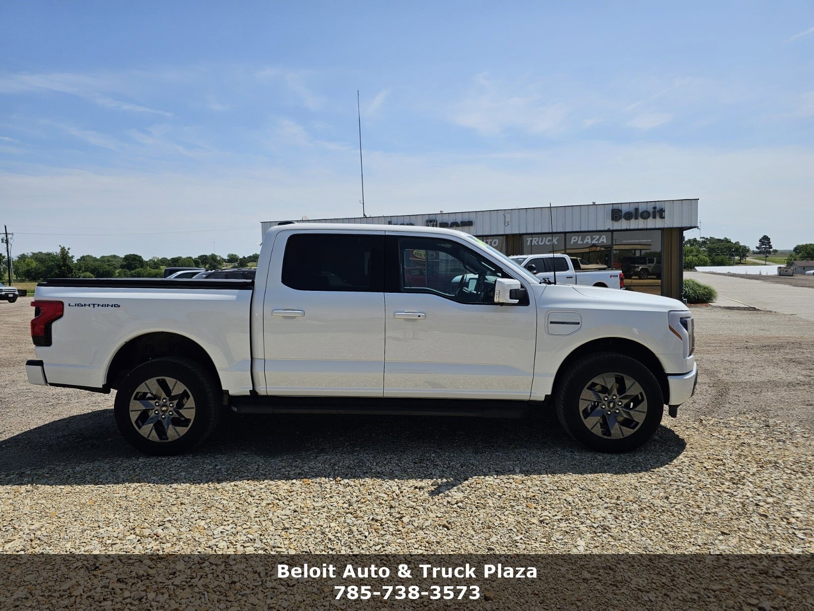 This is the truck that changes everything. The 2023 Ford F-150 Lightning LARIAT delivers instant electric torque, advanced technology, and the strength you expect from an F-150---without a drop of gas. Trucks like this don't sit long, and this one is ready now. Powered by a dual eMotor electric drivetrain with a 98 kWh standard-range high-voltage battery, the Lightning provides smooth, quiet acceleration paired with a single-speed automatic transmission for effortless driving in every situation. Electric trucks---especially LARIAT trims---are in high demand. If you've been waiting to make the move to electric without giving up capability, this is the one. If you've been waiting to make the move to electric without giving up capability, this is the one. Clean, modern interior with refined finishes. Electric trucks are in high demand. If you've been waiting to make the move to electric without giving up capability, this is the one. Visit us today at Beloit Auto and Truck Plaza, 3133 US Hwy 24, Beloit, KS 67420. Live a little---drive home this must-own F-150 Lightning LARIAT today!