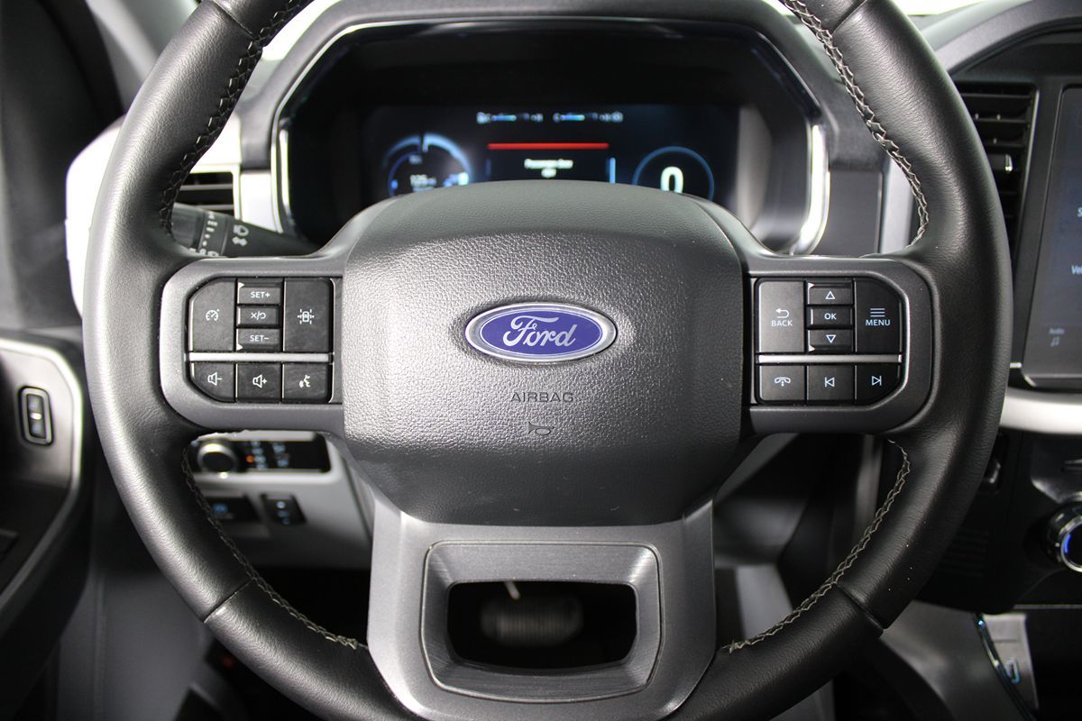 The 2023 Ford F-150 Lightning XLT 4WD SuperCrew 5.5' Box in Iconic Silver strikes a perfect balance between rugged capability and advanced technology. With its all-electric engine boasting a revolutionary 0 Cylinders, this truck delivers impressive power and efficiency without compromising performance. The bold exterior is complemented by LED headlights, providing a striking presence both day and night. Inside, the Medium Dark Slate interior offers a blend of comfort and sophistication, with features like heated seats ensuring a cozy ride in any climate. The intuitive navigation system and Bluetooth connectivity keep you connected and on track, whether you're exploring new territories or commuting through city streets. Safety is paramount, and this model is equipped with advanced features like a blind spot monitor, forward collision warning, lane departure warning, and lane keep assist to protect you and your passengers. For those who require versatility, the 2023 Ford F-150 Lightning comes with a towing package, making it ready for any adventure or work demands. Parking assist technology simplifies urban driving, while the mobile power cord (120/240v) ensures that you're always powered up for the journey ahead. The Equipment Group 311A Standard and front license plate bracket add practical value, ensuring the vehicle meets your everyday needs. Whether on or off the road, this all-wheel-drive F-150 Lightning combines innovative design with a forward-thinking mindset, setting a new standard for electric trucks.