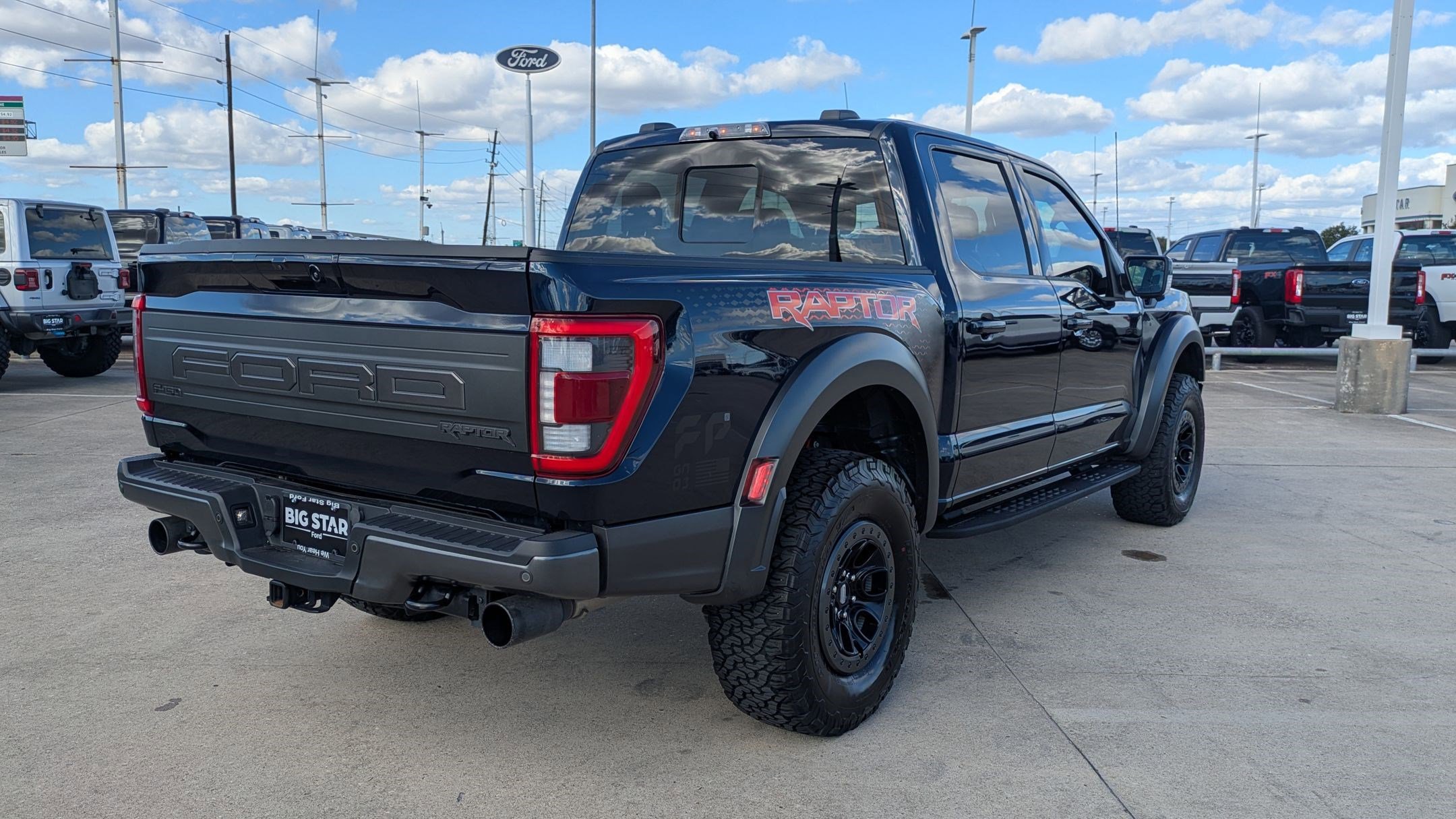 4WD. Big Star Ford is pleased to offer this trusty 2023 Ford F-150. Antimatter Blue Metallic Raptor 4WD Recent Arrival! Call our Internet team at 877-683-0816 for a VIP appointment. Stop by today for an exceptional car buying experience. Located at 17717 South FWY, Manvel, TX 77578. After the sale of a vehicle, it may take up to 72 hours for a vehicle to be removed from this site. Please verify the accuracy of the vehicle's information with the dealership and sales manager. Price does not include tax, title, license fees, or dealer installed items. It is the sole responsibility of the customer to check for installed items and availability of vehicles. All efforts are made to ensure accurate listings, but errors do occur. Please see dealer for more details. Certification Program Details: 118 point vehicle inspection 3 month / 3,000 miles comprehensive limited warranty with a $0 deductible Includes bonus coverage for defective coverage tires, batteries, brakes, and bulbs. GarffCare Roadside Assistance Complimentary vehicle history report Powertrain extending additives: Engine deposit cleaning additive Transmission conditioning additive Fuel system cleaner Cooling-system treatment Artic Blast A/C treatment Power steering fluid conditioner Second key and remote Free home delivery available.