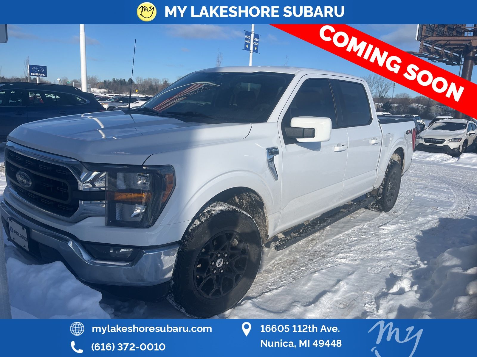 F-150 XLT, 5.0L V8, Oxford White, ABS brakes, Alloy wheels, Compass, Electronic Stability Control, Heated door mirrors, Illuminated entry, Low tire pressure warning, Remote keyless entry, Traction control. Oxford White 2023 Ford F-150 XLT 4WD 10-Speed Automatic 5.0L V8. My Lakeshore Subaru is your #1 choice in Michigan to get the best price on used vehicles and best value for your trade. The My Lakeshore Subaru team is ready to provide you with a world-class experience, ensuring that you find the perfect vehicle that fits all your needs. Every vehicle has been through a full safety inspection completed by certified technicians and fully detailed. Recent Arrival! My Lakeshore Subaru is proud to service customers saving you time & money on any pre-owned vehicle!