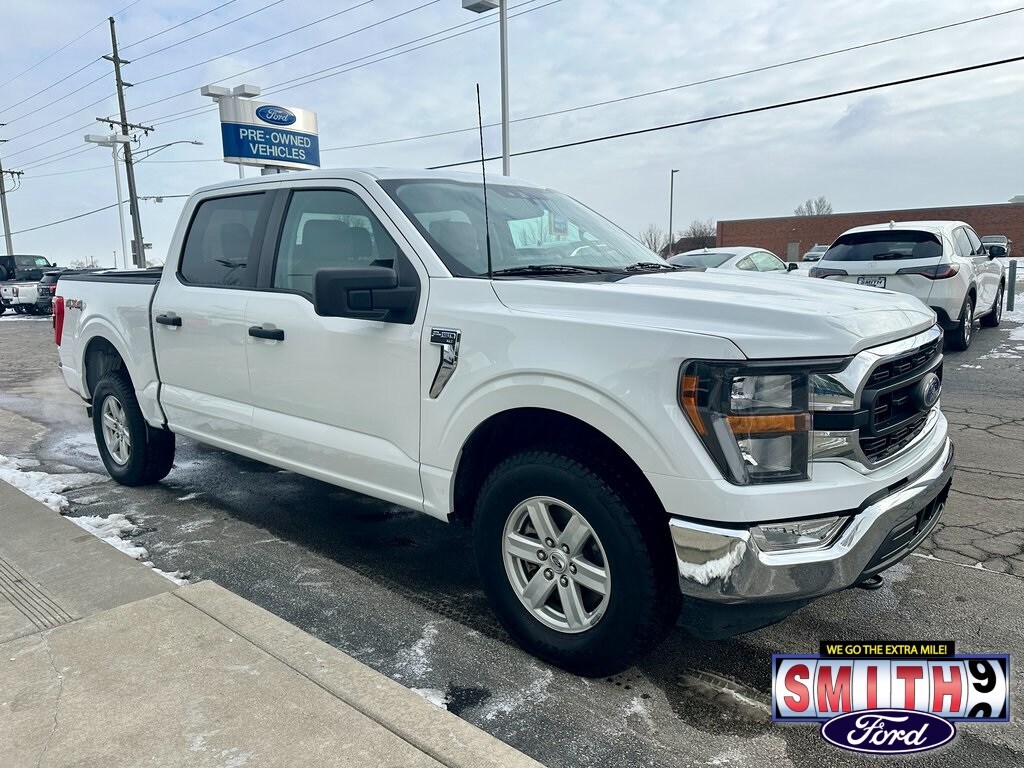 This Oxford White 2023 Ford F-150 XLT is the ultimate combination of power and smart technology, ready to tackle any job or weekend adventure. As a CARFAX One-Owner vehicle, this SuperCrew model features the legendary 3.5L V6 EcoBoost engine, providing the towing capability and performance you expect from America's favorite truck. Equipped with a robust 4X4 system, this F-150 is built to navigate tough terrain and snowy Northwest Indiana winters with confidence. The cabin is designed for both comfort and utility, featuring a versatile Cloth 40/20/40 Front Seat and a Split folding rear seat to accommodate extra cargo or passengers. Stay connected and safe on the road with a suite of modern driver-assist features, including Apple CarPlay for seamless access to your favorite apps and navigation. Blind Spot Monitor and Lane Departure Warning for added peace of mind on the highway. Remote Start and Heated door mirrors to help you get moving quickly on frosty mornings. Bluetooth Hands-Free and a high-resolution Back-up Camera. 17" Silver Painted Aluminum Wheels that provide a clean, classic look. Visit Smith Ford of Lowell to experience our "No Bull" difference firsthand. With 120 years of combined experience and our guaranteed upfront pricing, we make sure the price you see online is the price you get on paper.
