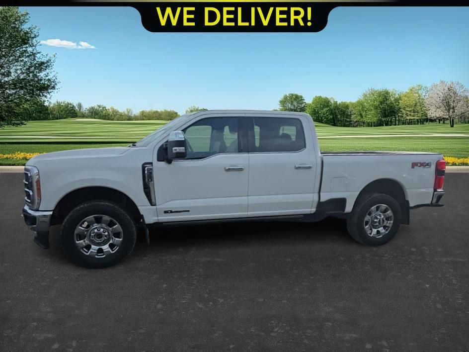 2023 Ford F-350SD Lariat Star White Metallic Tri-Coat 4WD 10-Speed Automatic Power Stroke 6.7L V8 DI 32V OHV Turbodiesel. 4WD. Chrome Package (6" Angular Bright Anodized Step Bars, Chrome Door Handles, Chrome Exhaust Tip, Unique Chrome Mirror Caps, and Wheels: 20" Chrome PVD Aluminum), FX4 Off-Road Package (Hill Descent Control, Off-Road Specifically Tuned Shock Absorbers, and Unique FX4 Off-Road Box Decal), Lariat Ultimate Package (4-Way Adjustable Headrests, Front Sensing System, Head-Up Display, Power-Deployable Running Boards, Radio: B&O Unleashed Sound System by Bang & Olufsen, SiriusXM Radio w/360L, SYNC 4 w/Enhanced Voice Recognition, Tailgate Step & Handle, Upfitter Switches (6), and Wireless Charging Pad), Order Code 618A, Tow Technology Package (Intelligent Adaptive Cruise Control w/Stop-and-Go, Lane Keeping Assist, Pro Trailer Backup Assist, and Pro Trailer Hitch Assist), 4WD, 190 Amp Alternator, 4-Wheel Disc Brakes, 410 Amp Dual Alternators, 8 Speakers, ABS brakes, Adjustable pedals, Air Conditioning, Alloy wheels, AM/FM radio: SiriusXM with 360L, Auto High-beam Headlights, Auto tilt-away steering wheel, Auto-dimming Rear-View mirror, Automatic High Beam, Automatic temperature control, BLIS w/Cross-Traffic Alert, Brake assist, Bumpers: chrome, Compass, Delay-off headlights, Driver door bin, Driver vanity mirror, Dual front impact airbags, Dual front side impact airbags, Electronic Stability Control, Emergency communication system: SYNC 4 911 Assist, Engine Block Heater, Exterior Parking Camera Rear, Flow-Through Console, Front & Rear Wheel Well Liners (Pre-Installed), Front anti-roll bar, Front Bucket Seats, Front Center Armrest, Front dual zone A/C, Front fog lights, Front Leather-Trimmed 40/Console/40 Seats, Front reading lights, Front Splash Guards/Mud Flaps (Pre-Installed), Fully automatic headlights, Garage door transmitter, Heated door mirrors, Heated front seats, Heated rear seats, Heated steering wheel, Illuminated entry, Lane-Keeping System, Leather steering wheel, Low tire pressure warning, Memory seat, Navigation system: Connected Navigation, Outside temperature display, Overhead airbag, Overhead console, Panic alarm, Passenger door bin, Passenger vanity mirror, Pedal memory, Post-Collision Braking, Power door mirrors, Power driver seat, Power passenger seat, Power steering, Power windows, Pre-Collision Assist, Pro Power Onboard - 2kW, Radio: B&O Sound System by Bang & Olufsen, Rain sensing wipers, Rapid-Heat Supplemental Cab Heater, Rear reading lights, Rear seat center armrest, Rear Splash Guards/Mud Flaps (Pre-Installed), Rear step bumper, Rear window defroster, Remote keyless entry, Security system, Speed control, Split folding rear seat, Steering wheel memory, Steering wheel mounted audio controls, Tachometer, Telescoping steering wheel, Tilt steering wheel, Traction control, Trip computer, Turn signal indicator mirrors.
