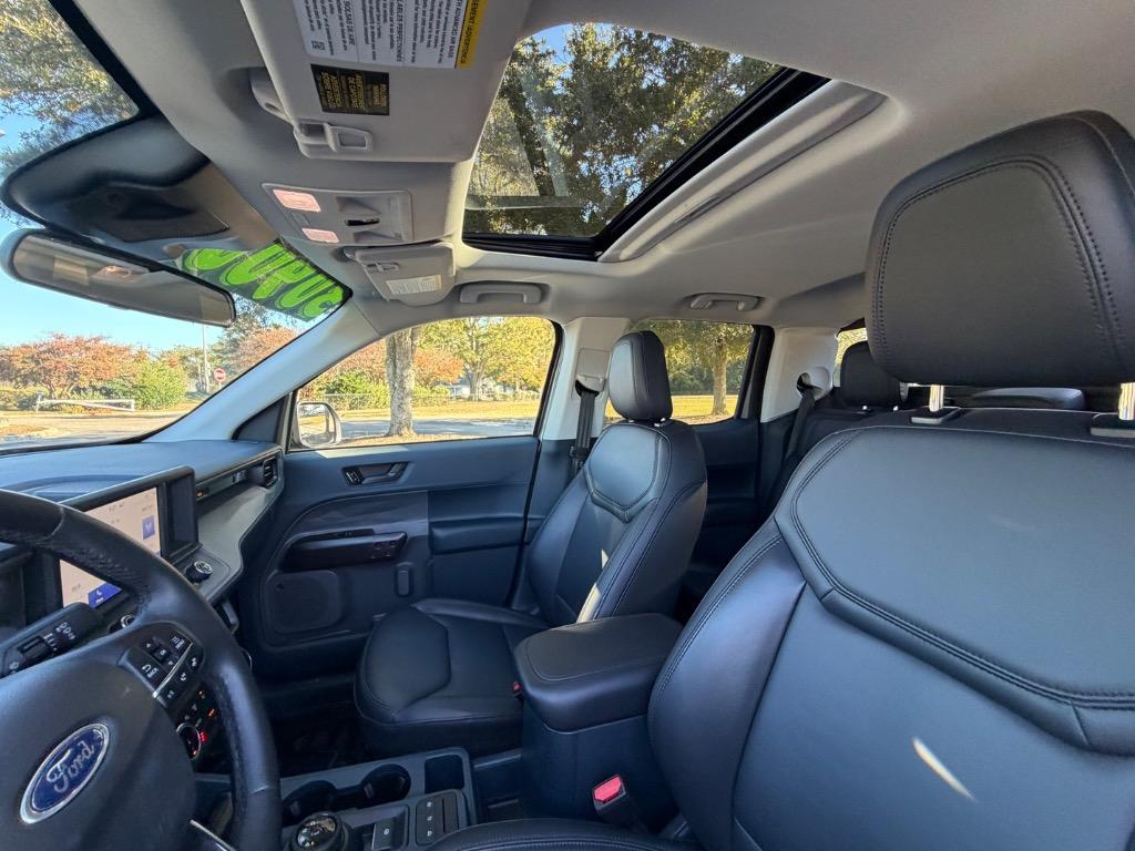 2023 Ford Maverick Lariat. 2.5L. Hybrid. Front wheel drive. Carfax certified accident free. Carfax certified one owner vehicle. Carbonized Gray Metallic exterior. Black Oynx leather interior. Remote start engine. Keyless entry. Push to start engine. Heated leather wrapped steering wheel with hands free talk. Audio and cruise controls. Ford CoPilot 360 ($650.00). Display screen with navigation. Backup camera. Media hub with SiriusXM (Lariat Luxury Package - $2,610.00). USB connection. Bluetooth. Wireless charging pad. Dual climate control. Power moonroof ($995.00). Power sliding rear window. Tuxmat all weather rubber floor mats. Heated front leather bucket seats. Rear USB ports. Rear leather bench seat. Tow package (Lariat Luxury Package). Locking tailgate. Bed rug. Retrax bed cover. Color keyed door handles and black side mirrors with blind spot monitoringing. Black front grille. Michelins tires.