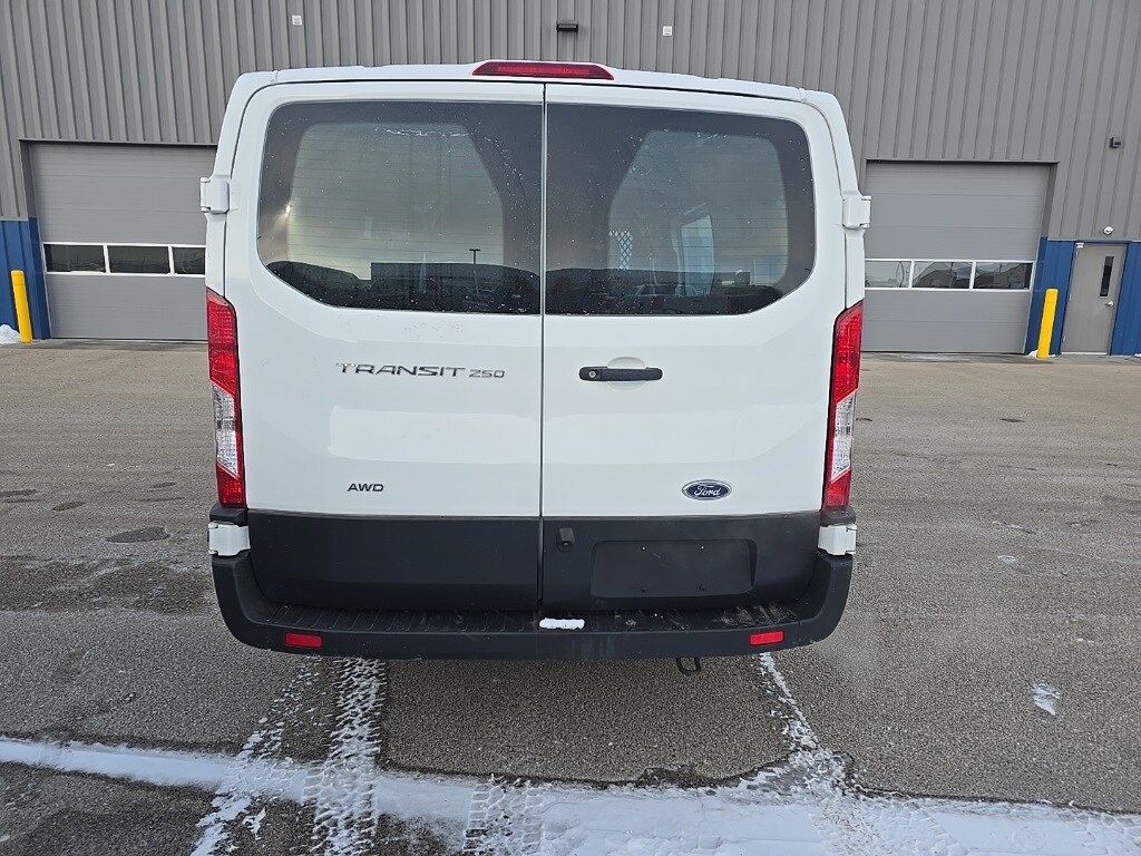 This 2023 Ford Transit-250 Base is finished in Oxford White and equipped with an AWD drivetrain. With just 12,806 miles, this full-size commercial van is offered by Lenz Truck Center in Fond du Lac and is powered by a 3.5L V6 flex fuel engine paired with a 10-speed automatic transmission, delivering dependable performance and versatility for business or fleet use. The Transit-250 Base is designed to support a wide range of commercial and upfitting needs, with a focus on durability, interior space, and year-round capability. The all-wheel-drive system enhances traction and control in varying weather and road conditions, making it well suited for daily operation in demanding environments. This example is equipped with the Exterior Upgrade Package and features a 3.73 limited slip axle ratio to support confident traction under load. Additional highlights include a backup camera to assist with maneuvering, cruise control for highway driving, and Apple CarPlay and Android Auto integration to support connectivity on the job. Goodyear Wrangler Workhorse AT tires sized 235/65R16 provide dependable traction and durability for commercial use. This 2023 Ford Transit-250 Base has a clean CARFAX history and is a one-owner vehicle. It also includes remaining factory warranty coverage, with a 36-month or 36,000-mile bumper-to-bumper warranty and a 60-month or 60,000-mile factory powertrain warranty. Available now at Lenz Truck Center in Fond du Lac, this Transit-250 is a low-mileage, well-equipped commercial van ready to support a wide range of professional needs.