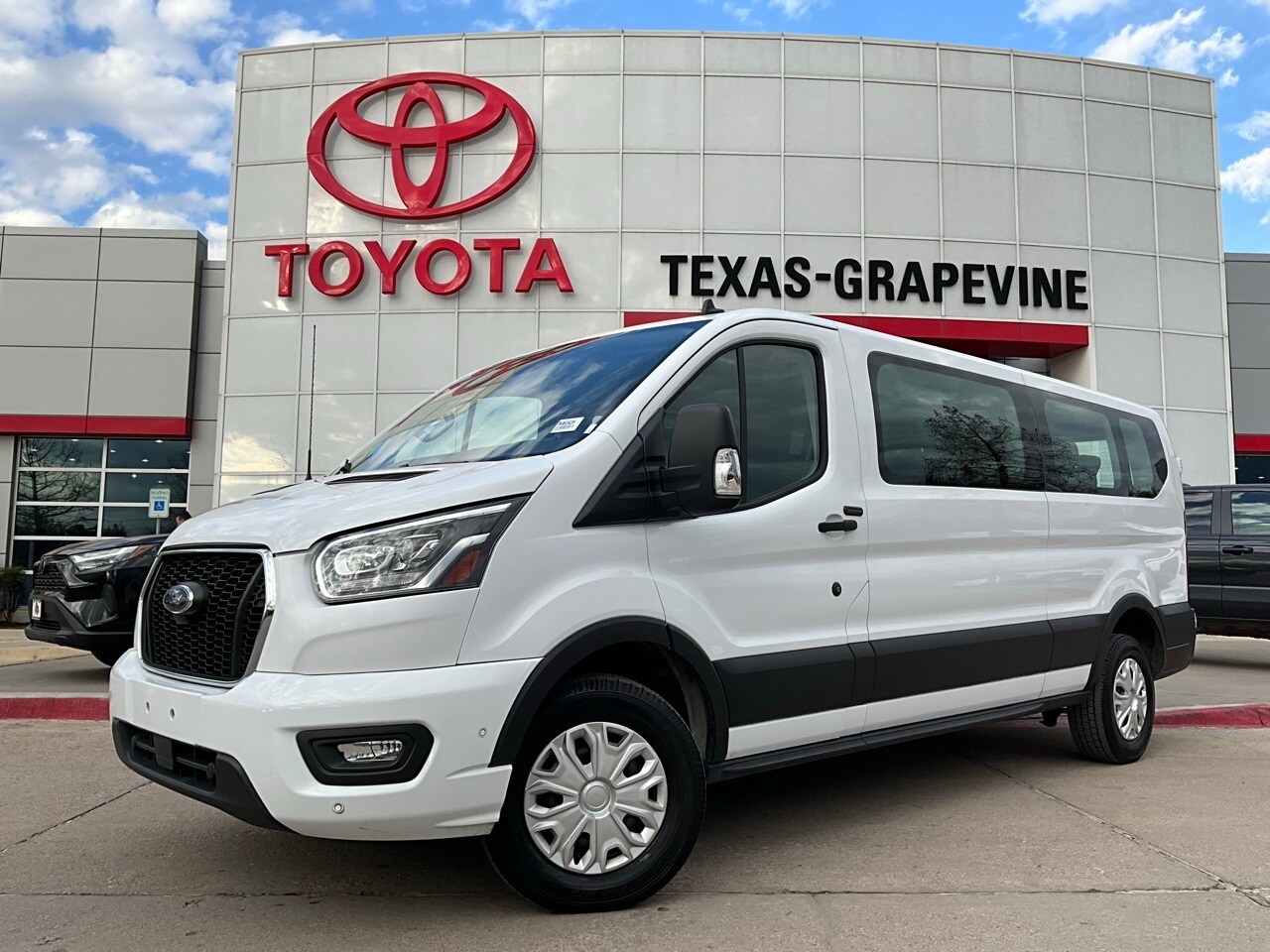 2023 Ford Transit-350 XLT. Located just minutes from DFW Airport, Texas Toyota of Grapevine is the premier Toyota dealership to meet all of your needs. Clean CARFAX. Backup Camera, Blind Spot Monitor with Rear Cross-Traffic Alert, Heated Seats, LED Accent Lighting, Navigation, Night Vision Auto-Dimming Mirror, Remote Start, Running Boards, Wheels, across from DFW Airport, Lane Departure Alert with Sway Warning, Auto High Beams, Push Button Start, Apple CarPlay Compatible, Android Auto. CARFAX One-Owner. Priced below KBB Fair Purchase Price! Odometer is 803 miles below market average!