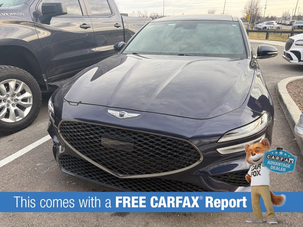 Discover the exceptional 2023 Genesis G70 2.0T, a captivating blend of style, performance, and advanced technology. This meticulously maintained, one-owner vehicle is a true standout, offering a thrilling driving experience and a wealth of premium features to elevate your daily commute. Finished in a stunning Blue exterior, this Genesis G70 2.0T commands attention on the road. The athletic silhouette and sculpted lines create a dynamic, eye-catching presence, while the sport-tuned suspension and all-wheel-drive system deliver an exhilarating driving experience. Step inside and you'll be greeted by a cabin that exudes refinement, with premium leather seating, heated and ventilated front seats, and a state-of-the-art infotainment system that seamlessly integrates your smartphone via Android Auto and Apple CarPlay. The powerful 2.0-liter turbocharged engine, paired with an 8-speed automatic transmission, provides a thrilling and responsive performance, delivering an impressive 20 city / 28 highway MPG. Whether you're navigating the daily commute or embarking on a weekend getaway, this Genesis G70 2.0T will exceed your expectations with its exceptional handling, ample power, and exceptional fuel efficiency. Safety is also a top priority, with a comprehensive suite of advanced driver-assistance technologies, including forward and reverse parking distance warning, automatic high-beam headlights, and an integrated memory system that remembers your preferred settings for the driver's seat, mirrors, and steering column. Discover the exceptional value and uncompromising quality of the 2023 Genesis G70 2.0T. This meticulously maintained, one-owner vehicle is a true gem, ready to elevate your driving experience. Schedule a test drive today and experience the difference for yourself.