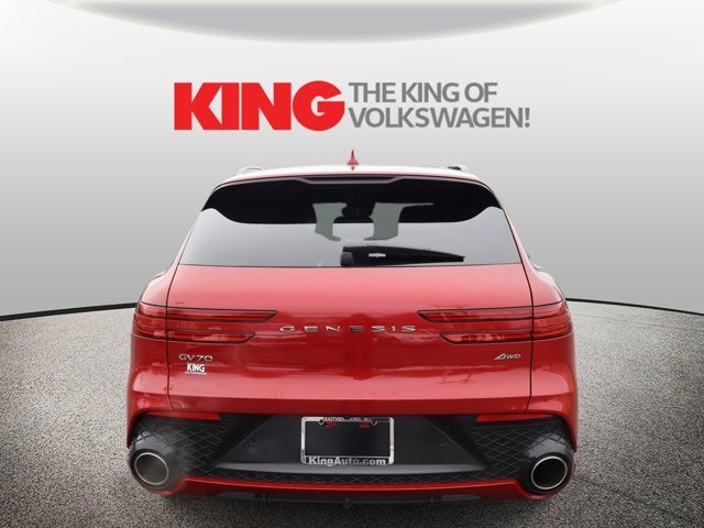 CARFAX 1-OWNER. GV70 2.5T, 2.5L DOHC, 8-Speed Automatic with SHIFTRONIC, AWD, Sevilla Red w/Leather Seating Surfaces w/Mesh Insert, 12.3" 3D Digital Instrument Cluster, 3-Zone Climate Control, Advanced Package, Aluminum Trim w/Haptic Carbon Pattern, Ergo Motion Seat, Genesis Digital Key, Leather Seating Surfaces w/Mesh Insert, Leatherette Wrapped Upper Instrument Panel, Navigation System, Option Group 04, Power Driver Seat Bolster & Cushion Extension, Select Package, Sport Appearance, Sport Prestige Package, Wheels: 21" Sport Dark Sputtering Alloy. CARFAX One-Owner. Pricing throughout the website does not include taxes, tags and $800 processing charge (not required by law), or dealer installed options (if applicable). We are an elite Volkswagen dealer serving Bethesda, Rockville, Gaithersburg, Clarksurg and Germantown, Maryland. We have many new Volkswagen cars, and SUVs available to choose from at remarkable prices. Additionally, we have a nice variety of quality used vehicles to select from. Our top priority is to provide the best customer care for each guest visiting our showroom. Come by today and take advantage of the benefits of purchasing your next new or pre-owned vehicle from King Volkswagen. We look forward to serving you!