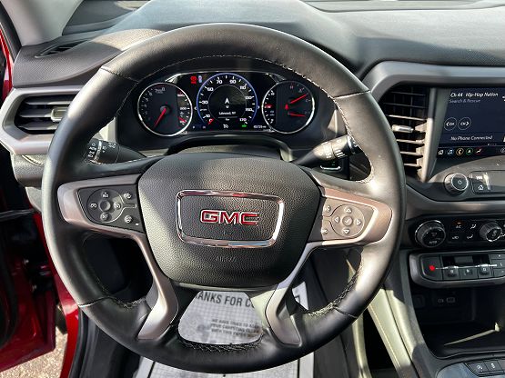 2023 GMC Acadia AT4 AWD 3-row SUV in Volcanic Red Tintcoat with Jet Black interior, 3.6L V6 and 9-speed automatic, for sale now at Jamestown Honda in Lakewood, NY. This one-owner Acadia AT4 has 45,722 miles and brings rugged style, all-weather capability, and family-friendly space to drivers in Lakewood, Jamestown, Falconer, Fredonia, and the greater Western New York area. This 2023 GMC Acadia AT4 features a 3.6L V6 engine with 310 hp, a 9-speed automatic transmission, and standard all-wheel drive, giving you confident power, towing capability, and traction for Western New York winters and weekend adventures. The AT4 off-roadinspired trim adds bold exterior styling, black accents, and an upgraded interior with leather seating surfaces, heated front and rear seats, a heated steering wheel, Memory and Luxury Packages, Technology Package with available head-up display, and an extended sunroof to elevate every drive. Inside, you get three rows of seating for up to six, generous first- and second-row space, and flexible cargo room when you fold the rear seats, making this Acadia AT4 ideal for families, commuters, and outdoor enthusiasts. Advanced driver assistance features such as blind-spot monitoring, rear cross-traffic alert, lane-keep assist, parking sensors, and a multi-view backup camera help you navigate town, school pickups, and tight parking lots with added confidence.