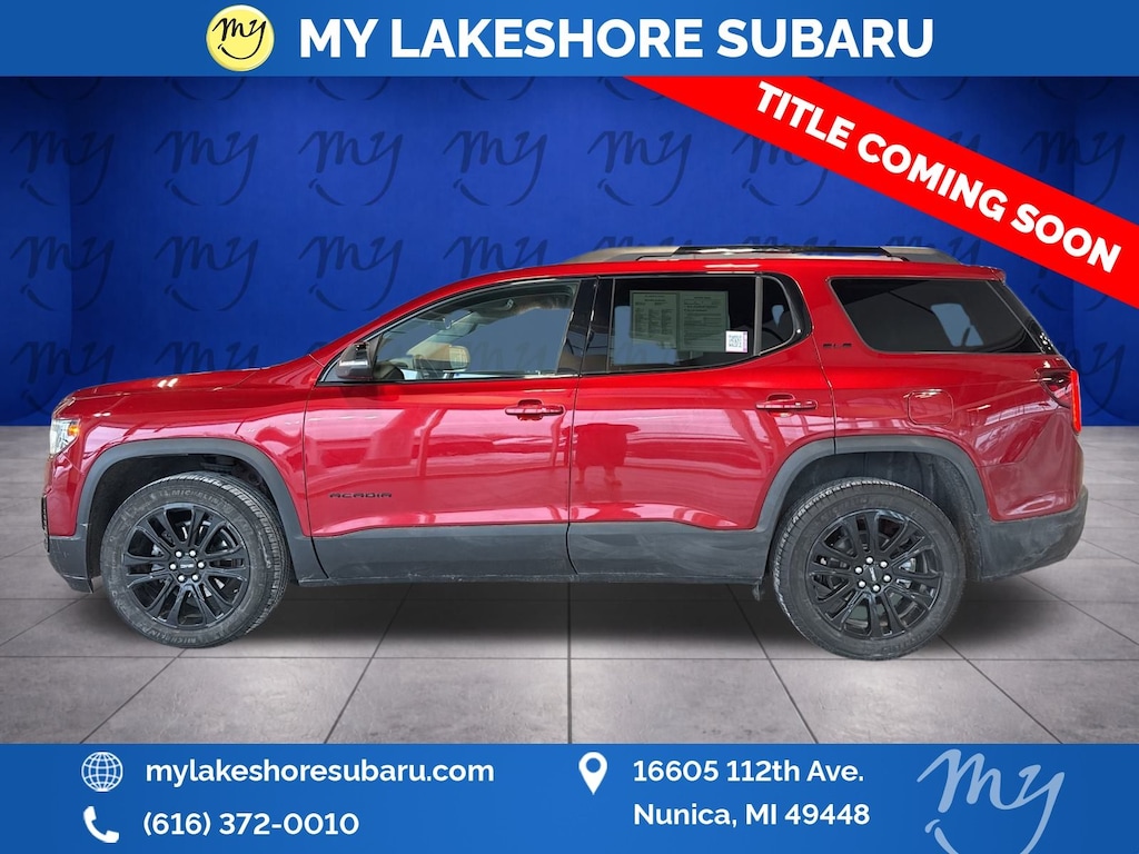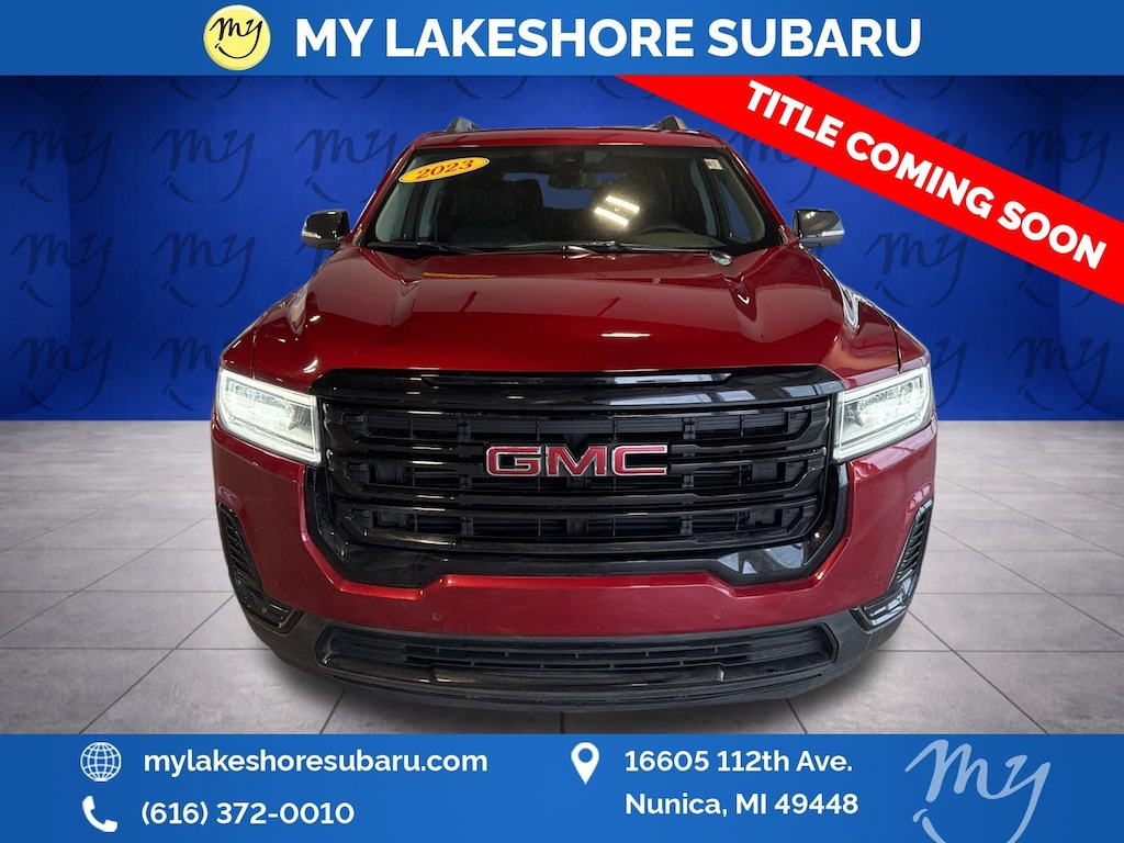 Acadia SLE, FWD, Volcanic Red Tintcoat, Jet Black Cloth, Apple CarPlay & Android Auto, Blind Spot Monitoring, Heated Seats, Lane Departure Warning, Local Trade, 120-Volt Power Outlet, 20" Machined Aluminum Wheels, 8-Way Power Driver Seat Adjuster, Brushed Aluminum Roof Rails, Driver Convenience Package, Elevation Edition, Gloss Black Roof Rails, Hands Free Power Programmable Liftgate, Heated Driver & Front Passenger Seats, Power Driver Lumbar Control Seat Adjuster, Preferred Equipment Group 3SA, Remote Start. Volcanic Red Tintcoat 2023 GMC Acadia SLE FWD 9-Speed Automatic 2.0L Turbocharged. My Lakeshore Subaru is your #1 choice in Michigan to get the best price on used vehicles and best value for your trade. The My Lakeshore Subaru team is ready to provide you with a world-class experience, ensuring that you find the perfect vehicle that fits all your needs. Every vehicle has been through a full safety inspection completed by certified technicians and fully detailed. Recent Arrival! Odometer is 1285 miles below market average! 22/29 City/Highway MPG. My Lakeshore Subaru is proud to service customer's in Michigan.