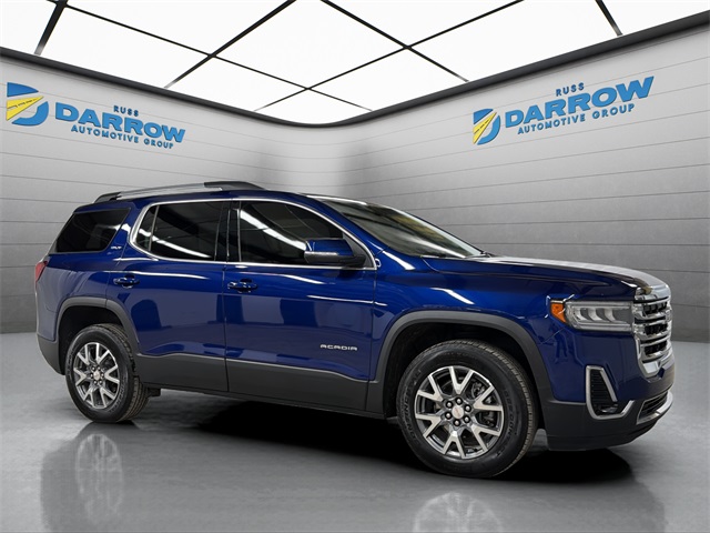 Recent Arrival! 2023 GMC Acadia SLT Ultra Blue Metallic 9-Speed Automatic 3.6L V6 SIDI AWD, 18" Aluminum Wheels, 3rd row seats: split-bench, 6-Passenger (2-2-2 Seating Configuration), 8-Way Power Driver Seat Adjuster, 8-Way Power Passenger Seat Adjuster, Apple CarPlay/Android Auto, Auto High-beam Headlights, Auto-dimming Rear-View mirror, Automatic temperature control, Bose Premium 8-Speaker Audio System Feature, Brake assist, Compass, Emergency communication system: OnStar and GMC connected services capable, Front fog lights, Fully automatic headlights, Heated & Ventilated Driver & Front Passenger Seats, Heated door mirrors, Heated Driver & Front Passenger Seats, Heated Rear Outboard Seating Positions, Heated Steering Wheel, Illuminated entry, Luxury Package, Memory Package, Not Equipped w/Front & Rear Park Assist (060), Outside temperature display, Power Driver Lumbar Control Seat Adjuster, Power Liftgate, Power Passenger Lumbar Control Seat Adjuster, Power Tilt & Telescopic Steering Column, Power-Adjustable Body-Color Outside Heated Mirrors, Preferred Package, Radio: AM/FM 8" Diagonal Multi-Touch Navigation, Security system, SiriusXM w/360L, Speed control, Speed-sensing steering, Steering wheel mounted audio controls, Variably intermittent wipers, Wireless Apple CarPlay/Wireless Android Auto. Clean CARFAX. Odometer is 8866 miles below market average! 19/26 City/Highway MPG Includes exclusive membership status in the Russ Darrow Rewards Program. Earn points for every dollar spent on goods and services at any Russ Darrow location, plus extra points if purchasing packages with the Finance office. Use these points on your next new or used vehicle purchase at any Russ Darrow Dealership. You will earn $10 for every 1,000 points redeemed, up to a maximum redemption of $500 per transaction. For more detailed information visit russdarrowrewards.com.