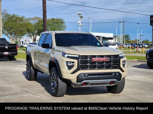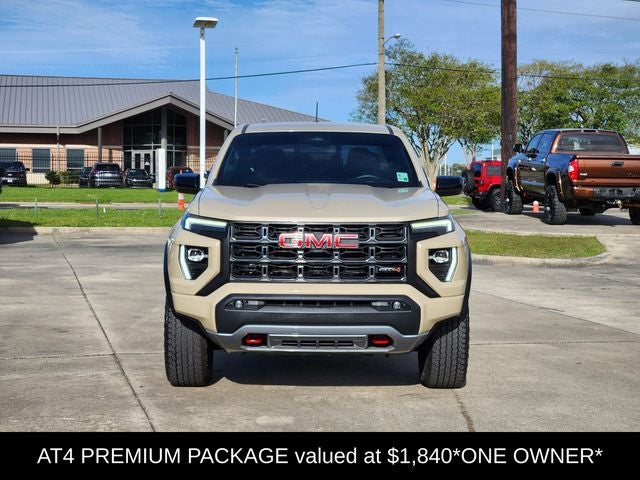 One owner, Clean Vehicle History Report, leather, no accident history, 4WD. Shop entirely from home. We'll even deliver to your door. Car buying made easy at Mark! Call us today at 337-474-2640 to schedule a test drive. Recent arrival! Odometer is 6693 miles below market average! CARFAX One-Owner. Desert Sand Metallic 2023 GMC Canyon AT4 4WD 2.7L Turbo 8-Speed Automatic.