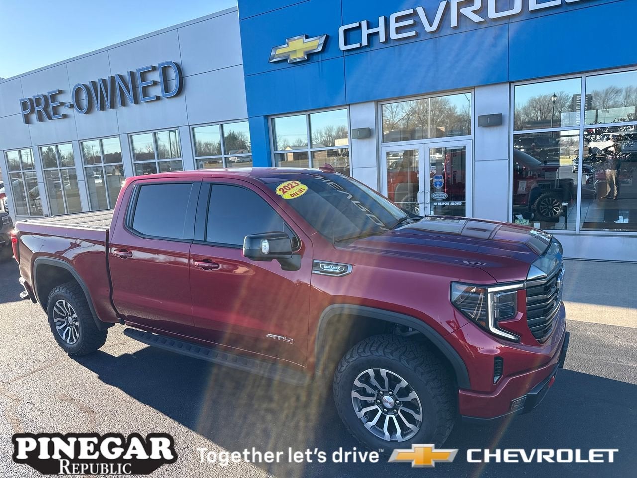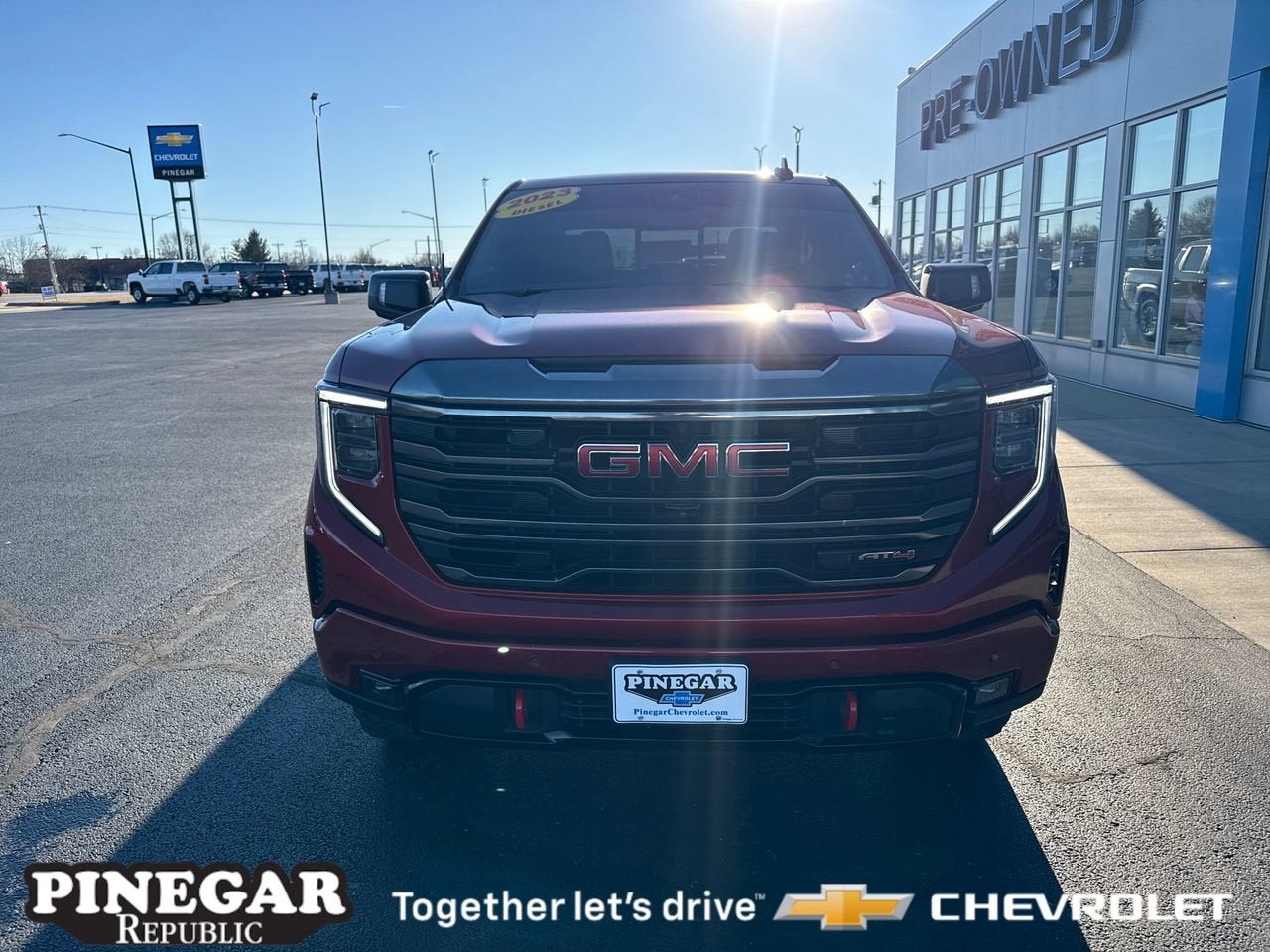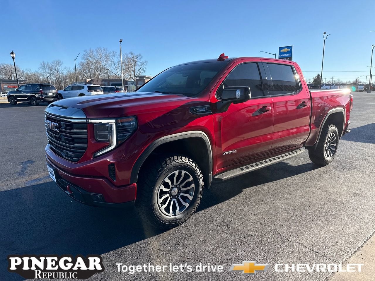 Priced below KBB Fair Purchase Price! Clean CARFAX. CARFAX One-Owner. Volcanic Red Tintcoat 2023 GMC Sierra 1500 AT4 10-Speed Automatic 3.0L I6 4WD Sierra 1500 AT4, 4D Crew Cab, 3.0L I6, 10-Speed Automatic, 4WD, Volcanic Red Tintcoat, Jet Black With Kalahari Accents Leather, 10-Way Power Driver Seat Adjuster w/Lumbar, 10-Way Power Passenger Seat Adjuster w/Lumbar, 120-Volt Bed Mounted Power Outlet, 120-Volt Instrument Panel Power Outlet, 2 Charge/Data USB Ports Inside Center Console, 2 Type-C Charge-Only Rear USB Ports, 2 USB Ports, 220 Amp Alternator, 4-Wheel Disc Brakes, ABS brakes, Adaptive Cruise Control, Alloy wheels, Apple CarPlay/Android Auto, AT4 Preferred Package, Auto High-beam Headlights, Auto-dimming door mirrors, Auto-dimming Rear-View mirror, Auto-Locking Rear Differential, Automatic Emergency Braking, Automatic temperature control, Black Chrome Header & Grille Insert Bars, Block heater, Brake assist, Color-Keyed Carpeting Floor Covering, Compass, Deep-Tinted Glass, Driver Memory, Dual front impact airbags, Dual front side impact airbags, Electric Rear-Window Defogger, Electrical Steering Column Lock, Emergency communication system: OnStar and GMC connected services capable, Engine Block Heater, Floor-Mounted Center Console, Following Distance Indicator, Forward Collision Alert, Front Bucket Seats, Front dual zone A/C, Front fog lights, Front Pedestrian Braking, Front Prem Floor Liners w/Removable Carpet Insert, Front Rainsensing Wipers, Fully automatic headlights, GMC Connected Access Capable, HD Surround Vision, Heated 2nd Row Outboard Seats, Heated door mirrors, Heated Driver & Front Outboard Passenger Seating, Heated front seats, Heated rear seats, Heated steering wheel, Heavy-Duty Air Filter, Hill Descent Control, Hitch Guidance, Hitch Guidance w/Hitch View, In-Vehicle Trailering App, Integrated Trailer Brake Controller, IntelliBeam Automatic High Beam On/Off, Keyless Open & Start, Lane Keep Assist w/Lane Departure Warning, LED Cargo Area Lighting, Memory seat, Navigation System, Occupant sensing airbag, Off-Road Suspension, OnStar & GMC Connected Services Capable, Overhead airbag, Panic alarm, Perforated Front Leather Seat Trim, Perimeter Lighting, Power Door Locks, Power door mirrors, Power driver seat, Power Front Passenger Windows w/Express Up/Down, Power Front Windows w/Driver Express Up/Down, Power Rake & Telescoping Steering Column, Power Rear Windows w/Express Down, Power Sliding Rear Window w/Rear Defogger, Power windows, Preferred Equipment Group 4SB, Premium audio system: GMC Infotainment System, Premium Bose 7-Speaker Sound System, Push Button Start, Radio: Premium GMC Infotainment Audio System, Rain sensing wipers, Rear Cross Traffic Braking, Rear Pedestrian Detection, Rear Prem Floor Liners w/Removable Carpet Insert, Rear Wheelhouse Liners, Red Recovery Hooks, Remote keyless entry, Remote Vehicle Starter System Safety Alert Seat Security system SiriusXM w/360L Speed control Spray-On Pickup Bed Liner w/AT4 Logo Steering Wheel Audio Controls Steering wheel mounted audio controls Theft Deterrent System (Unauthorized Entry) Traction control Trailer Camera Provisions Trailer Side Blind Zone Alert Trailering Package Ultrasonic Front & Rear Park Assist Universal Home Remote Variably intermittent wipers Ventilated Driver & Front Passenger Seats Wireless Charging Wireless Phone Projection.