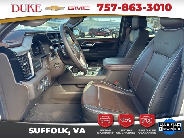 The 2023 GMC Sierra 1500 Denali represents the absolute pinnacle of modern full-size pickup trucks, blending commanding strength, refined luxury, advanced technology, and unmistakable presence into one exceptionally well-rounded vehicle. Offered at Duke Chevrolet GMC in Suffolk, Virginia, this Sierra 1500 Denali carries a clean CARFAX one-owner history and reflects the level of care and attention expected from a premium local trade that has never been a rental and has been maintained with pride. Finished in striking White Frost Tricoat and paired with a rich Atmosphere and Brownstone leather interior, this Denali delivers an immediate impression of sophistication and confidence. From the moment it is seen, the Sierra Denali communicates authority through its bold stance, signature Denali chrome grille, sculpted body lines, and premium detailing that elevate it well beyond the standard pickup category. Beneath the hood, the proven EcoTec3 5.3 liter V8 engine works in harmony with a refined 10 speed automatic transmission, providing seamless power delivery, strong torque, and confident acceleration whether cruising on the highway, towing heavy loads, or navigating demanding terrain. The advanced four wheel drive system ensures stability and traction in all conditions, giving drivers peace of mind year round. As with every qualifying vehicle from Duke Chevrolet GMC, this Sierra Denali is supported by Lifetime U Benefits that include Lifetime Oil Changes, a 12 month or 12,000 mile Powertrain Warranty, Lifetime Virginia State Inspections, a 4 day or 200 mile Exchange Policy, and a Lifetime Service and Parts Guarantee, creating an ownership experience that extends far beyond the initial purchase and reinforces why so many customers continue to choose Duke. Performance and capability are core to the identity of the 2023 GMC Sierra 1500 Denali, delivering a driving experience that is both powerful and exceptionally smooth. The EcoTec3 5.3 liter V8 engine provides robust horsepower and torque that make towing, hauling, and highway passing feel effortless, while the advanced 10 speed automatic transmission optimizes gear selection for efficiency and responsiveness in every driving situation. Whether accelerating from a stop, merging onto the interstate, or climbing steep grades with a trailer in tow, the Sierra Denali responds with confidence and composure. The integrated trailering package enhances towing capability with features such as hitch guidance, hitch view, trailer camera provisions, an integrated trailer brake controller, and an in vehicle trailering app that simplifies setup and monitoring. Adaptive cruise control allows for relaxed highway driving, while the heavy duty air filter and auxiliary transmission oil cooler support durability under demanding conditions. Hill descent control adds confidence when navigating steep terrain, and the auto locking rear differential ensures traction when conditions become challenging. This Sierra Denali is engineered to perform without compromise, offering the strength of a true work truck while delivering a level of refinement that makes every drive enjoyable regardless of purpose. Inside, the 2023 GMC Sierra 1500 Denali offers an interior environment that rivals luxury SUVs, combining premium materials, advanced technology, and thoughtful design into a cabin that feels both inviting and commanding. The Atmosphere and Brownstone leather seating surfaces are meticulously crafted, offering heated and ventilated front seats, heated second row outboard seats, and memory settings that allow the driver to quickly return to their preferred position. The power rake and telescoping steering column, along with push button start and keyless open and start, enhance daily convenience. A massive multicolor 15 inch diagonal head up display projects vital driving information directly into the drivers line of sight, reducing distraction while providing a clear view of the road.