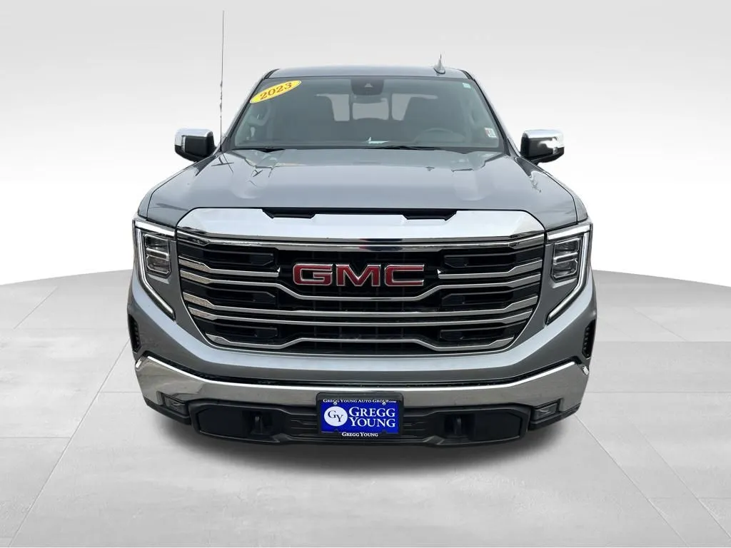 Discover the 2023 GMC Sierra 1500 SLT, a used pickup truck that combines rugged capability with modern luxury. With just over 14,500 miles, this Sterling Metallic beauty offers a powerful 5.3-liter V8 engine delivering 355 horsepower and 383 lb-ft of torque, perfectly suited for both work and play. Its 10-speed automatic transmission and 4WD system ensure confident handling across various terrains. Inside, the Jet Black interior provides premium comfort with heated seats, memory functions, and a spacious six-passenger layout. Loaded with advanced features such as adaptive cruise control, lane keep assist, collision warning, and a backup camera, this used Sierra is ready to elevate your driving experience. Stay connected with Apple CarPlay, Bluetooth, a premium audio system, and a Wi-Fi hotspot, while the navigation system keeps you on track with real-time traffic updates. Additional convenience features include keyless entry, push start, satellite radio readiness, and an integrated tow package, making this used Sierra a versatile choice for daily driving and heavy-duty hauling. This used GMC Sierra 1500 SLT is equipped with a comprehensive suite of safety and security features designed to keep you protected on every journey. It includes a rear seat reminder system, four-wheel ABS, and power door locks with anti-lockout and auto-locking functions, ensuring safety and convenience. The programmable safety key provides added control, while the electronic parking brake with auto-off enhances ease of use during parking maneuvers. These features work together to deliver peace of mind, whether you're hauling heavy loads or navigating busy city streets. The Sierra's advanced technology begins with a large 13.4-inch infotainment touchscreen, featuring Google Built-In for seamless navigation and voice commands. Compatibility with myGMC Connected Access and Amazon Alexa allows for smart device integration, enabling remote start and vehicle status monitoring through apps. Hands-free voice-activated calling and radio operation keep your focus on the road, while the digital navigation system provides real-time traffic data to optimize your route. The touch screen display, coupled with in-car app marketplace integration, creates an intuitive and connected driving environment, making this used Sierra a tech-savvy choice. Performance-wise, this used Sierra is equipped with auto start/stop technology to improve fuel efficiency during city driving. Its part-time 4WD system with an on-demand setting allows for adaptable traction control, whether on-road or off. The electronic 4WD selector makes it easy to switch between modes, while a locking rear differential provides enhanced stability and traction when tackling challenging terrain or heavy loads. These performance features ensure that the vehicle can handle a variety of driving conditions with confidence and ease.