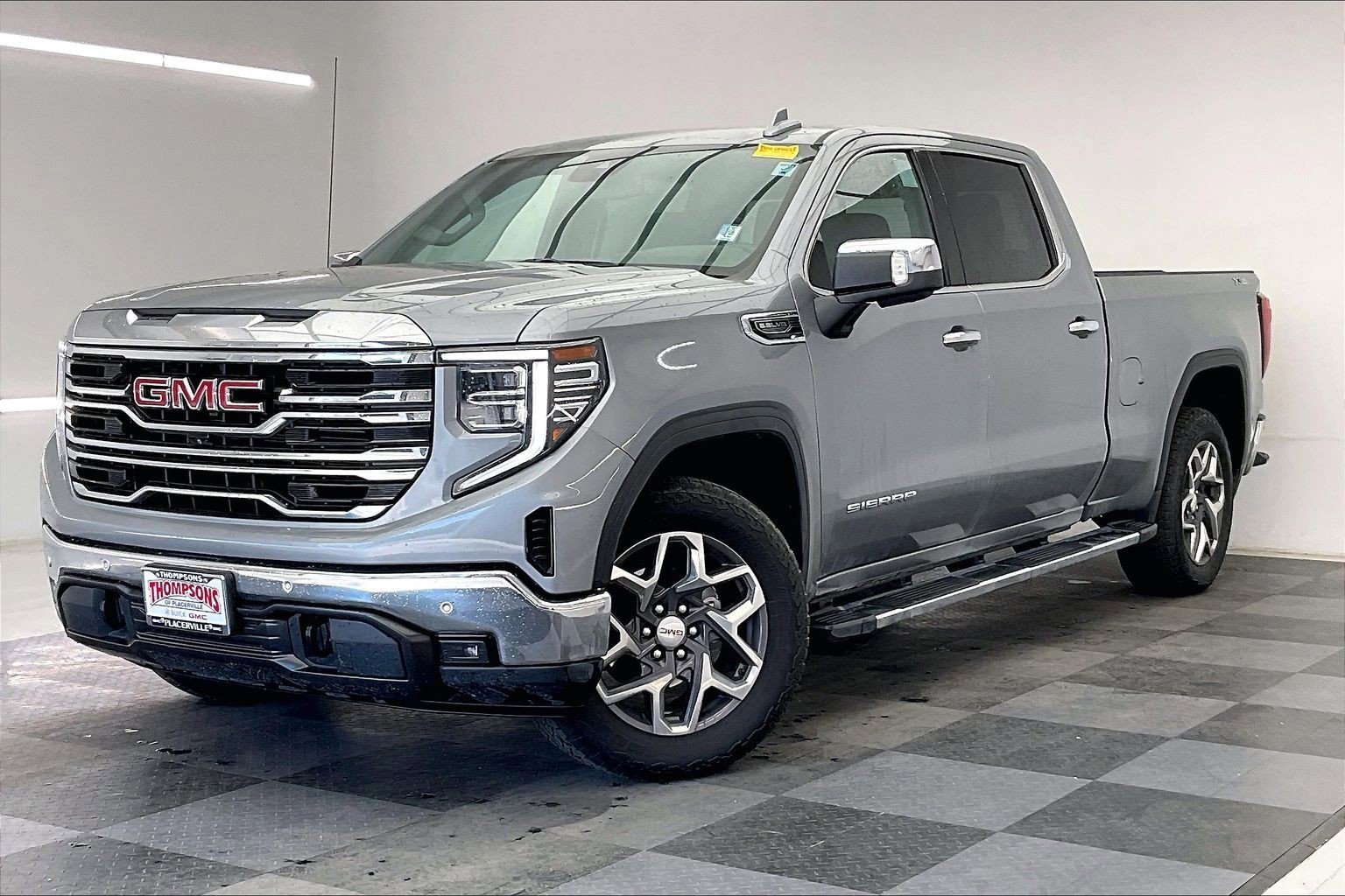 Thompsons GMC of Placerville is pleased to present for sale this stunning 2023 GMC Sierra 1500 SLT as part of our hand-selected pre-owned lineup. This gorgeous vehicle is finished in the Sterling Metallic exterior paint and Jet Black interior. Other factory options include: Premium Plus Package, Bose, X31 Off-Road & Protection Package, Backup Camera, Bedliner, Blind Spot Monitor, Bluetooth, Heated Seats, Leather, Navigation system, Non Smoker, Parking Sensors, Premium Wheels, Tow Package, Ventilated Seats. CARFAX One-Owner. Odometer is 4535 miles below market average! To see more quality vehicles like this just click on https://www.thompsonsgmc.com/ or dial (530) 295-5700. Want this vehicle delivered? Contact us about a Red Carpet Delivery. Give us your zip code and we will provide a reasonable estimate to get the vehicle you want delivered right to your doorstep.
