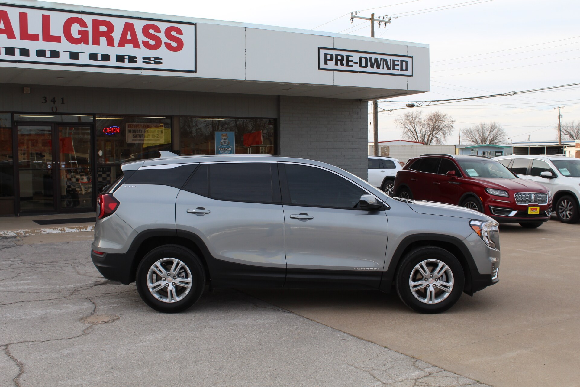 2023 GMC Terrain SLE, front wheel drive, cloth interior, all weather floor mats, push button start, keyless entry, Bluetooth, Apple CarPlay, Android Auto, rear vision camera, LED headlights and taillights, forward crash alert, lane keep assist, lane departure warning, power windows and locks, automatic climate control, one owner, clean Carfax.