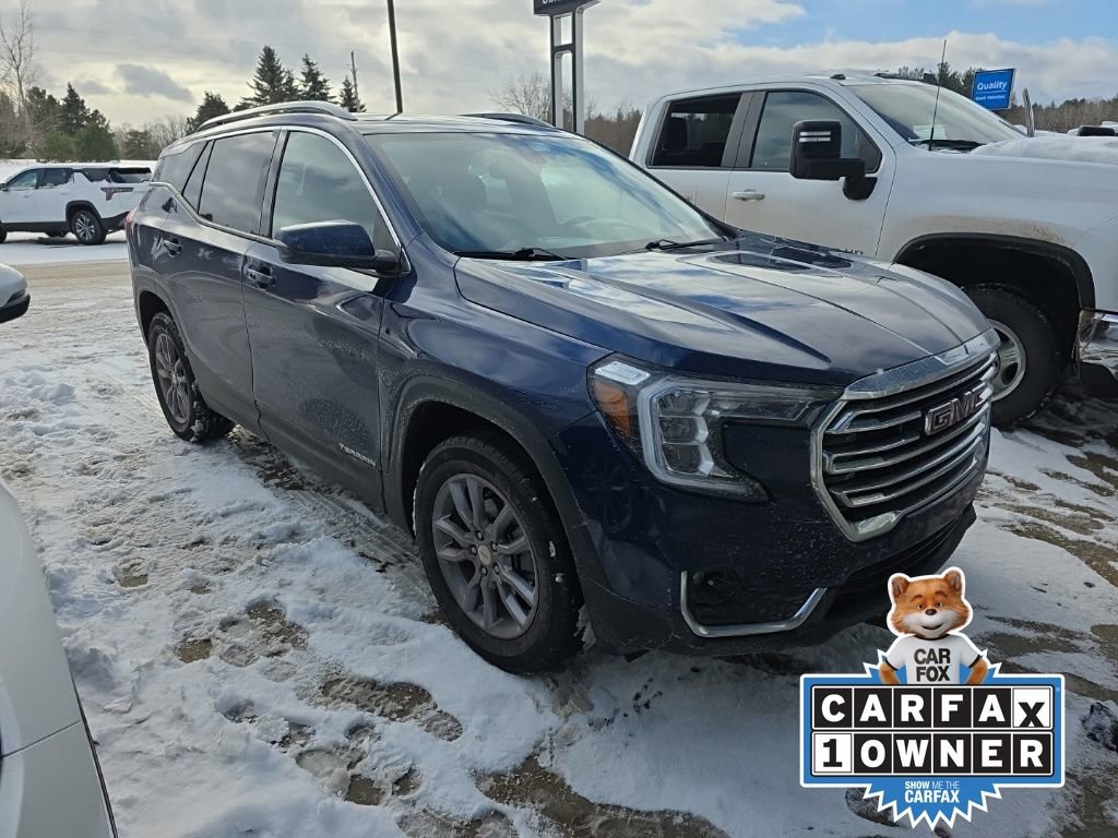 Discover the exceptional 2023 GMC Terrain SLT, a versatile and well-equipped SUV that seamlessly blends style, performance and advanced technology. With its striking design and a host of premium features, this Terrain SLT is poised to elevate your driving experience. Step inside and you'll be greeted by a spacious and well-appointed cabin, crafted with premium materials and thoughtful design. The Terrain SLT's 8-inch infotainment system seamlessly integrates with your smartphone, providing wireless Apple CarPlay and Android Auto connectivity, ensuring you stay connected and entertained on every journey. Safety is paramount, and the Terrain SLT delivers with a host of advanced driver-assistance technologies, including Lane Departure Warning, Forward Collision Alert, and the reassuring presence of OnStar emergency services. Enjoy the peace of mind that comes with knowing you and your loved ones are well-protected.