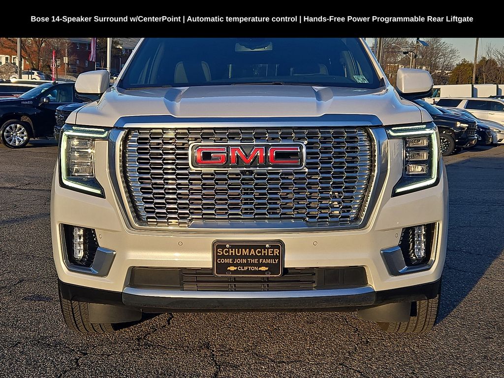 Priced below KBB Fair Purchase Price! Odometer is 4244 miles below market average! Schumacher Chevrolet of Clifton is proud to offer this great 2023 GMC Yukon Denali in White Frost Tricoat. Beautifully equipped with Preferred Equipment Group 5SA, License Plate Front Mounting Package, Apple CarPlay/Android Auto, Auto-dimming door mirrors, Automatic temperature control, Bose 14-Speaker Surround w/CenterPoint, Bright Front & Rear Door Sill Plates, Chrome Door Handles w/Body-Color Strip, Dual Exhaust System, Enhanced Automatic Emergency Braking, Floor Console, Galvano Bodyside Moldings, Hands-Free Power Programmable Rear Liftgate, HD Surround Vision, Heated & Ventilated Driver & Front Passenger Seats, Heated 2nd Row Outboard Position Seats, Heated door mirrors, Heated steering wheel, Hill Descent Control, Inside Rear-View Auto-Dimming Mirror, IntelliBeam Automatic High Beam On/Off, Lane Change Alert w/Side Blind Zone Alert, Lane Keep Assist w/Lane Departure Warning, Magnetic Ride Control Suspension, Navigation System, Outside Heated Power-Adjustable Mirrors, Power driver seat, Power Liftgate, Power Release 2nd Row Bucket Seats, Power Tilt & Telescopic Steering Column, Rear Cross Traffic Alert, Rear Pedestrian Alert, Remote keyless entry, Security system, SiriusXM w/360L, Speed control, Steering wheel memory, Steering wheel mounted audio controls, Traction control, Universal Home Remote, Wheels: 22" x 9" Steel Interim (LPO), Wireless Charging.