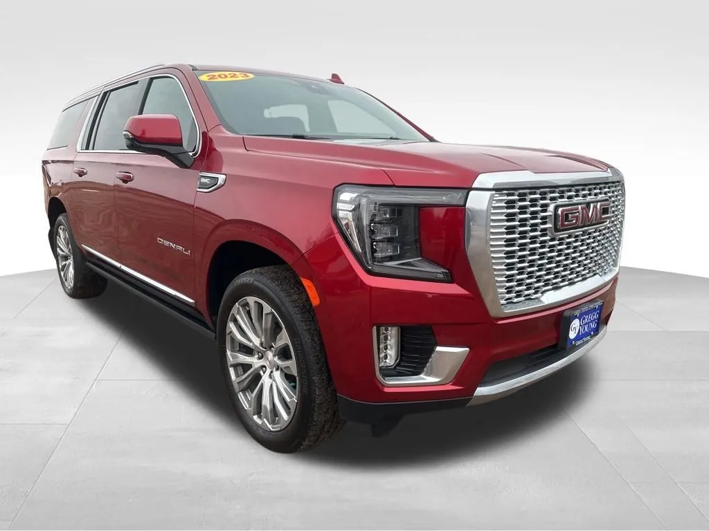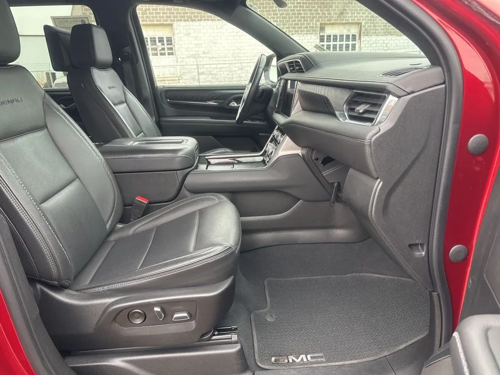 This used 2023 GMC Yukon XL Denali exemplifies luxury and versatility, combining impressive performance with a wealth of premium features. Its striking Volcanic Red Tintcoat exterior and sophisticated Jet Black interior make a commanding statement on the road. With just under 42,000 miles, this SUV is well-maintained and ready for drivers seeking ample space, modern technology, and safety. Powered by a strong 6.2-liter V8 engine producing 420 horsepower and 460 lb-ft of torque, paired with a smooth 10-speed automatic transmission and four-wheel drive, this Yukon XL is built for both daily use and adventurous trips. Its interior comfortably seats seven, featuring heated and rear heated seats, a sunroof, and a versatile third row. Modern amenities like adaptive cruise control, Apple CarPlay, a premium audio system, and wireless charging elevate every journey, blending power, comfort, and connectivity in a used package. Safety and security are paramount in this used GMC Yukon XL Denali. It includes essential features such as rear seat reminder, front center airbags, and front and rear parking sensors to assist with parking and low-speed maneuvers. The vehicle is equipped with four-wheel anti-lock brakes, anti-lockout power door locks, and auto-locking locks for added security. A programmable safety key allows customization of safety settings, while hill descent control provides confidence during off-road driving. These safety features work together to ensure peace of mind, making this used Yukon XL a reliable and secure choice for your family or lifestyle needs.