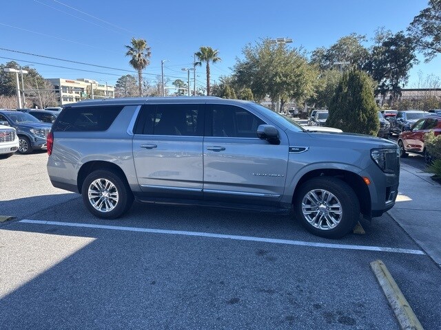 Clean CARFAX. CARFAX One-Owner. Recent Arrival! Sterling Metallic 2023 GMC Yukon XL SLT RWD 10-Speed Automatic with Overdrive EcoTec3 5.3L V8 APPLE CAR PLAY, ANDROID AUTO, USB PORTS, BLUETOOTH, 2 Presets For Outside Rearview Mirrors, 2 Presets For Power Driver Seat, 3.23 Rear Axle Ratio, 3rd Row 60/40 Power-Folding Split-Bench Seat, Adaptive Cruise Control, Alloy wheels, Bose 9-Speaker Stereo Audio System Feature, Bright Chrome Bodyside Moldings, Bright Front & Rear Door Sill Plates, Chrome Door Handles w/Body-Color Strip, Enhanced Automatic Emergency Braking, Hands-Free Power Programmable Rear Liftgate, HD Surround Vision, Heated & Ventilated Driver & Front Passenger Seats, Heated 2nd Row Outboard Position Seats, Heated Driver & Front Passenger Seats, Heated Steering Wheel, Inside Rear-View Auto-Dimming Mirror, Navigation System, Outside Heated Power-Adjustable Mirrors, Power Release 2nd Row 60/40 Split-Folding Bench Seat, Power Tilt & Telescopic Steering Column, Preferred Equipment Group 4SA, Rear Pedestrian Alert, Safety Alert Seat, SLT Luxury Package, Universal Home Remote, Wheels: 20" x 9" 6-Spoke Polished Aluminum, Wireless Charging.