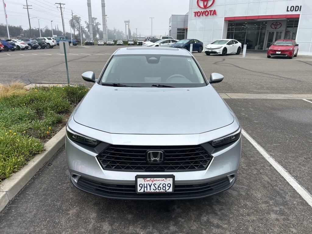 Recent Arrival! 29/37 City/Highway MPG CARFAX One-Owner. Clean CARFAX. Manager's special, very clean, like new, local trade in, fuel efficient, Accord EX, Black with fabric seat trim, 8 speakers, Adaptive Cruise Control: Adaptive Cruise Control (ACC) with Low-Speed Follow, Alloy wheels, Exterior Parking Camera Rear, Front dual zone A/C, Fully automatic headlights, Heated Front Bucket Seats, Lane departure: Lane Keeping Assist System (LKAS) active, Low tire pressure warning, Power driver seat, Power moonroof, Radio: 180-Watt AM/FM Audio System, Remote keyless entry, Security system. Lunar Silver Metallic 2023 Honda Accord EX 1.5T I4 DOHC 16V Turbocharged VTEC FWD CVT. From beginning to end, Lodi Toyota is by your side. If you're interested in any one of the number of cars, trucks, products or services that we have to offer, please stop by and see us today! We're located at 1020 Beckman Road Lodi, CA 95240, and just a short drive away from our other local communities that we're here to proudly serve. Every one of Lodi Toyota's hand picked pre-owned cars and trucks have been thoroughly inspected by our own car care/repair experts and has been carefully reconditioned to ensure that it's in top shape. Tires, brakes, fluids, cabin and engine air filters, and windshield wipers, have been checked and replaced if necessary, so that you are ready to roll! We want to make your life easier - Clear and Best pricing on every Pre-Owned vehicle. We also want to help ensure that the extraordinary experience of owning a Lodi Toyota Pre-Owned vehicle stands the test of time. If you need additional photos or a copy of your complimentary Carfax history report or any other information to help you make an informed decision, we are here to help! Just give us a call or stop by! Thanks for looking! Give us a try! You won't be disappointed!