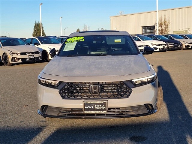 46/41 City/Highway MPG. Recent Arrival! Carfax One-Owner. 2.0L 16V DOHC. Odometer is 8816 miles below market average! Urban Gray Pearl 2023 Honda Accord Hybrid Sport-L 2.0L 16V DOHC FWD eCVT. From beginning to end, Kia of Stockton is by your side. If you're interested in any one of the number of cars, trucks, products or services that we have to offer, please stop by and see us today! We're located at 6215 Holman Road Stockton, CA 95212, and just a short drive away from our other local communities that we're here to proudly serve. Every one of Kia of Stockton's hand picked pre-owned cars and trucks have been thoroughly inspected by our own car care/repair experts and have been carefully reconditioned to ensure that it's in top shape. Tires, brakes, fluids, cabin and engine air filters, and windshield wipers, have been checked and replaced if necessary, so that you are ready to roll! We want to make your life easier - clear and best pricing on every pre-owned vehicle. We also want to help ensure that the extraordinary experience of owning a Kia of Stockton pre-owned vehicle stands the test of time. If you need additional photos or a copy of your complimentary Carfax history report or any other information to help you make an informed decision, we are here to help! Just give us a call or stop by! Thanks for looking! Give us a try! You won't be disappointed!