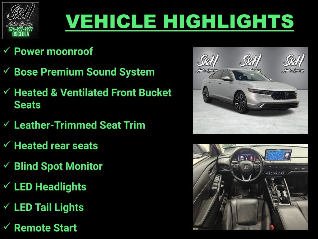 2.0L 16V DOHC. 2023 Honda Accord Hybrid Touring FWD eCVT 2.0L 16V DOHC. At S & H we pride ourselves on our outstanding customer service, our transparent sales process and our rock bottom prices! Recent Arrival! Enjoy the benefits of certified service near Mishawaka IN, South Bend IN, Niles MI and Edwardsburg MI at the S&H Motor Sales Service Center. If you're anything like us, you love the feeling of driving a preowned car, and you want your car to feel like new for years and years to come. Fortunately, one of the best ways to ensure that, and avoid costly repairs in the future is to keep up with your manufacturer-recommended maintenance. And with years of preowned service expertise under our belts here at S&H Motor Sales, there's no one better equipped to serve your car care needs than we are.
