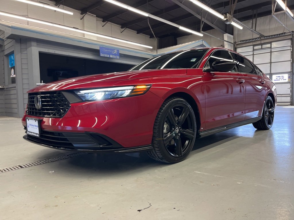 This 2023 Honda Accord Sport-L 2.0 Hybrid is loaded with premium features including leather seats, heated seats, power moonroof, blind spot detection, dual climate control, remote start, backup camera, memory seats, lane departure warning, lane keeping assist, Bluetooth, Apple CarPlay, and Android Auto.
