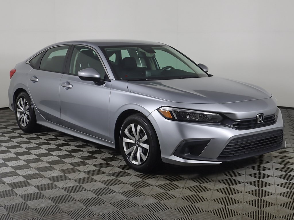 2023 Honda Civic LX Lunar Silver Metallic 4D Sedan Recent Arrival! 2.0L I4 DOHC 16V i-VTEC Adaptive Cruise Control: Adaptive Cruise Control (ACC) with Low-Speed Follow, Apple CarPlay/Android Auto, Auto High-beam Headlights, Automatic temperature control, Delay-off headlights, Exterior Parking Camera Rear, Fully automatic headlights, 16'' Wheels w/Full Covers, 4 Speakers, 4-Wheel Disc Brakes, ABS brakes, Air Conditioning, AM/FM radio, Brake assist, Bumpers: body-color, Cloth Seat Trim, Driver door bin, Driver vanity mirror, Dual front impact airbags, Dual front side impact airbags, Electronic Stability Control, Emergency communication system: HondaLink, Four wheel independent suspension, Front anti-roll bar, Front Bucket Seats, Front Center Armrest, Front reading lights, Illuminated entry, Knee airbag, Low tire pressure warning, Occupant sensing airbag, Outside temperature display, Overhead airbag, Panic alarm, Passenger door bin, Passenger vanity mirror, Power door mirrors, Power steering, Power windows, Radio data system, Radio: 160-Watt Audio System w/4 Speakers, Rear anti-roll bar, Rear side impact airbag, Rear window defroster, Remote keyless entry, Security system, Speed control, Speed-sensing steering, Steering wheel mounted audio controls, Tachometer, Telescoping steering wheel, Tilt steering wheel, Traction control, Trip computer, Lane keep assist, Lane departure warning, Forward collision alert, Keyless start. Clean CARFAX. CARFAX One-Owner. Odometer is 15903 miles below market average! 31/40 City/Highway MPG. Stop overpaying! Save thousands on both - your car purchase and a financing together! You can't miss this deal! Just take a look! KBB prices reflects a value of the vehicle for the vehicle published by Kelly Blue Book within the last 60 days. Financing is available for all credit situations. The financing team at Honda of Cleveland Heights has decades of experience and wide-ranging lending relationships to get you financed on the vehicle of your dreams! Visit us online at www.hondaofclevelandheights.com. Here, at Honda of Cleveland Heights, we are proud to offer low mile, late model inventory at incredible prices. All of our vehicles are inspected and reconditioned by ASE certified technicians. Honda of Cleveland Heights sets out to offer all clients great prices, flexible financing terms, high-quality vehicles, and a thoroughly transparent buying process. Please call us today to begin your purchase!