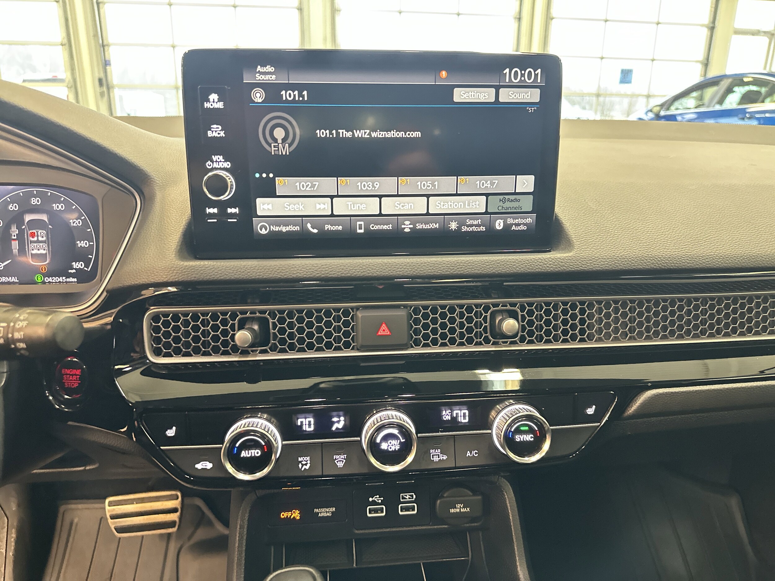 ONE OWNER! Clean Carfax! Local trade! Moonroof & leather! Civic Sport Touring, 4D Hatchback, 18" Alloy Wheels, Adaptive Cruise Control: Adaptive Cruise Control (ACC) with Low-Speed Follow, Apple CarPlay/Android Auto, Auto High-beam Headlights, Automatic temperature control, Blind Spot Information (BSI) System warning, Bose Premium Audio System, Exterior Parking Camera Rear, Lane departure: Lane Keeping Assist System (LKAS) active, Navigation system: Honda Satellite-Linked Navigation System, Power moonroof, Radio data system, Rain sensing wipers. 30/37 City/Highway MPG Clean Carfax. Lunar Silver Metallic 2023 Honda Civic Sport Touring. All vehicles are subject to prior sale. Price does not include applicable tax, title, license, and a $398.00 documentation fee or other fees required by law, lending institutions, and/or lessors. Vehicles shown at different locations are not currently in our inventory (not in stock) but can be made available at our location within a reasonable time after your request. The payment information provided here is not a commitment by any organization to provide credit, leases or other programs.