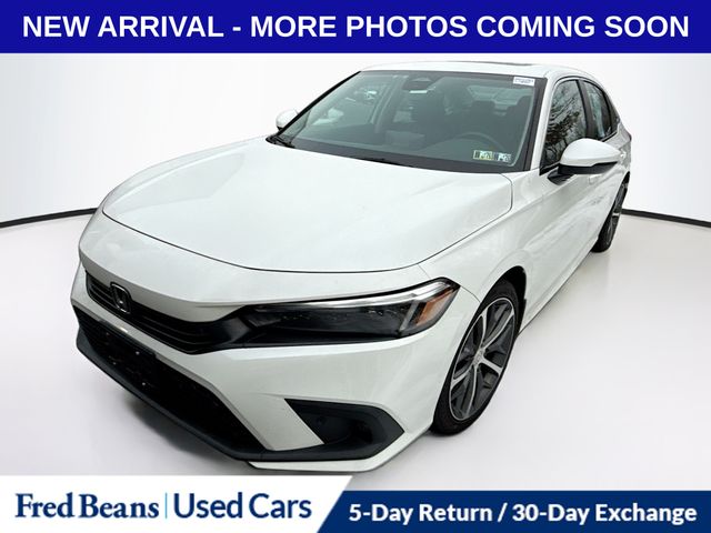 Recent Arrival! 2023 Honda Civic Touring 1.5L I-4 DI DOHC Turbocharged CVT FWD 4D Sedan White Triton Certified Vehicle, 7 Year / 100k Powertrain Warranty, 12 Month / 12,000 Mile Comprehensive Warranty, Black w/Leather Seat Trim, AM/FM radio: SiriusXM, Apple CarPlay/Android Auto, Auto High-beam Headlights, Auto-dimming Rear-View mirror, Automatic temperature control, Blind Spot Information (BSI) System warning, Exterior Parking Camera Rear, Front dual zone A/C, Fully automatic headlights, Heated Front Bucket Seats, Heated front seats, Leather Seat Trim, Navigation system: Honda Satellite-Linked Navigation System, Power driver seat, Power moonroof, Remote keyless entry, Steering wheel mounted audio controls. CARFAX One-Owner. Clean CARFAX. Odometer is 1980 miles below market average! For better peace of mind all our used vehicles have a 127-point inspection and come with a 5-day return, 30-day exchange (As-Is vehicles are excluded). Our exclusive Auto Rewards Program provides better value with Free First Oil change, Free Pa State Safety inspections, discounts for local merchants and more. Plus, you can earn up to $2000 towards your next vehicle just by servicing with Fred Beans! As Fred Beans always says, our used cars are better because our reputation depends on it.