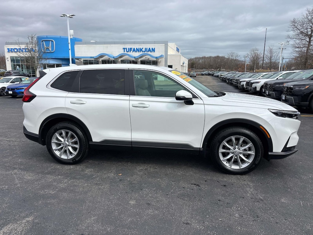 Certified. Platinum White Pearl 2023 Honda CR-V EX-L AWD CVT 1.5L I4 DOHC 16V one owner, clean vehicle history...no accidents, recent trade in, moonroof sunroof, leather, Honda certified, CR-V EX-L, 4D Sport Utility, AWD, Platinum White Pearl. Recent Arrival! 27/32 City/Highway MPG. HondaTrue Certified Details: Warranty Deductible: $0. Limited Warranty: 24 Month/100,000 Mile (whichever comes first) after new car warranty expires or from certified purchase date. Vehicle history report. Title information. Odometer readings. Accident data (if applicable). Service history. Vehicle usage. Recall information (if applicable). Warranty status. Free CarFax report. A name you can trust. Tufankjian Honda of Plymouth is dedicated to your satisfaction before, during, and after your purchase. We'll go the extra mile to take care of you.