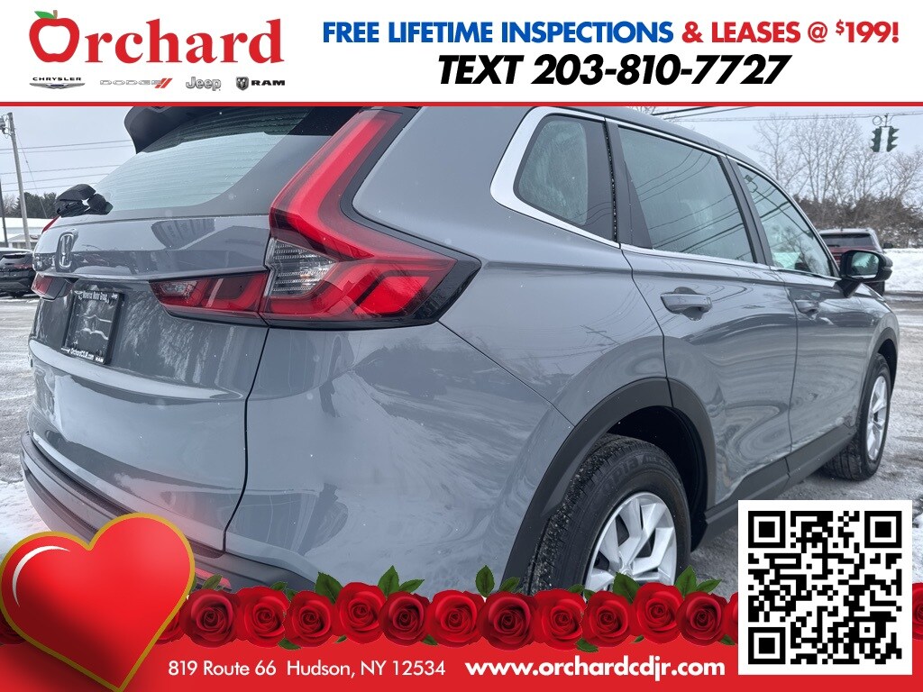 2023 Honda CR-V LX compact SUV designed for efficiency, safety, and everyday versatility. AWD with efficient 27/32 city/highway MPG and Honda Sensing driver-assist technology. A clean, well-equipped example that's ready for its next owner. Why Buy from Orchard CDJR? At Orchard Chrysler Dodge Jeep Ram, we believe car buying should be as refreshing as a crisp fall harvest. As your hometown dealer, we're rooted in customer service and here to help you find the perfect vehicle to fit your lifestyle. Hand-Picked Deals – Fair pricing and transparent offers you can trust. Financing for Every Basket – From top-tier credit to fresh starts, we'll help you grow your options. Service That Bears Fruit – Our certified team services all makes and models, keeping you on the road season after season. Local Roots, Wide Reach – Proudly serving Columbia, Greene, Albany, Rensselaer, Dutchess, and Ulster Counties. At Orchard CDJR, you don't just pick a car – you pick a dealership that puts people first.