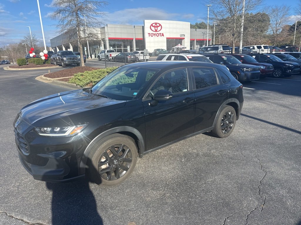Clean Carfax. Carfax One-Owner. Crystal Black Pearl 2023 Honda HR-V Sport FWD CVT 2.0L I4 DOHC 16V i-VTEC Clean Carfax 1 Owner/No Accident Vehicle, local trade in, back up camera, heated seats, blind spot monitor, Apple CarPlay & Android Auto, 1-owner, no accidents, must see! Local one owner trade-in! Recent arrival! Odometer is 5237 miles below market average! 26/32 City/Highway MPG. At Leith Toyota, our goal is to ensure that all of our customers are completely satisfied. Our team consists of true professionals who are dedicated to our customers. We challenge ourselves every day with standards of excellence to maintain customers for life. We take great pride being one of the very best in customer service and satisfaction, and continually strive to improve upon our performance.