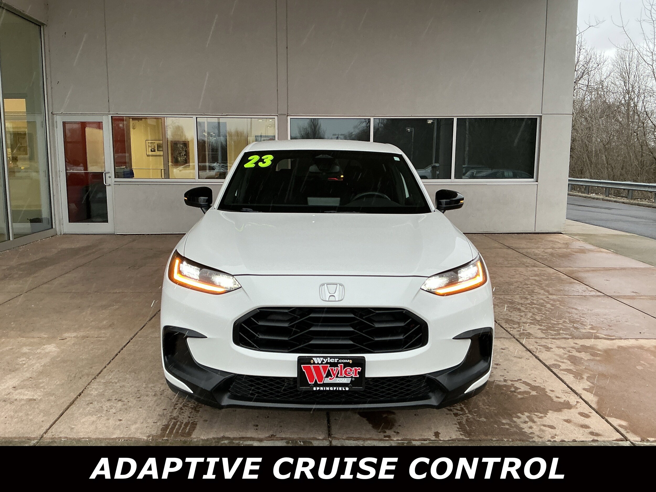 Jeff Wyler Springfield Auto Mall is excited to offer this terrific 2023 Honda HR-V Sport in White. Well equipped with: 4-Wheel Disc Brakes, 5.436 Axle Ratio, 6 Speakers, ABS brakes, Adaptive Cruise Control: Adaptive Cruise Control (ACC) with Low-Speed Follow, Air Conditioning, Alloy wheels, AM/FM radio, Apple CarPlay/Android Auto, Auto High-beam Headlights, Automatic temperature control, Blind Spot Information (BSI) System warning, Brake assist, Bumpers: body-color, Cloth Seat Trim, Delay-off headlights, Driver door bin, Driver vanity mirror, Dual front impact airbags, Dual front side impact airbags, Electronic Stability Control, Emergency communication system: HondaLink, Exterior Parking Camera Rear, Four wheel independent suspension, Front anti-roll bar, Front Bucket Seats, Front Center Armrest, Front reading lights, Fully automatic headlights, Heated door mirrors, Heated Front Bucket Seats, Heated front seats, Illuminated entry, Knee airbag, Leather Shift Knob, Low tire pressure warning, Occupant sensing airbag, Outside temperature display, Overhead airbag, Panic alarm, Passenger door bin, Passenger vanity mirror, Power door mirrors, Power steering, Power windows, Radio data system, Radio: 180-Watt Audio System w/6 Speakers, Rear anti-roll bar, Rear reading lights, Rear side impact airbag, Rear window defroster, Rear window wiper, Remote keyless entry, Security system, Speed control, Speed-sensing steering, Split folding rear seat, Spoiler, Steering wheel mounted audio controls, Tachometer, Telescoping steering wheel, Tilt steering wheel, Traction control, Trip computer, Turn signal indicator mirrors, Variably intermittent wipers, and Wheels: 18" Gloss Black Alloy. Ask about available certifications. Used vehicles 10 years of age or newer with less than 100,000 miles are eligible for the Wyler Assurance Program, but eligible vehicles must pass our reconditioning process and multi-point inspection. Provided the vehicle passes inspection, vehicles will be eligible for the 6 month/6,000 mile limited warranty. The 6 month/6,000 mile limited warranty is NOT available on AS-IS vehicles, wholesale vehicles, lease buyback/pass-thru vehicles or un-inspected vehicles. Note that this program can also apply to vehicles where the remaining factory coverage is less than 6 months or 6,000 miles. Please check the Federal Trade Commission (FTC) Buyers guide on the vehicle for full details as to whether or not warranty coverage may apply. Contact Dealer for additional details. The Wyler Assurance 6 month/6,000 Mile limited warranty ends 6 months from the date of the Retail Purchase Agreement (BUYERS ORDER) or when the vehicle's odometer registers 6,000 additional miles to the mileage listed on the BUYERS ORDER, whichever comes first. Your Deductible - The warranty holder on your contract pays the first $100 of each covered repair.