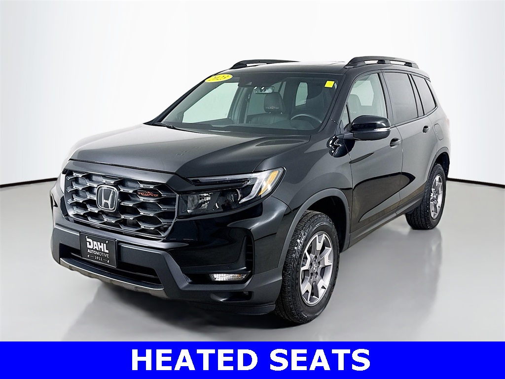 2023 Crystal Black Pearl Honda Passport TrailSport AWD 3.5L V6 24V SOHC i-VTEC This Honda Passport has many features and is well equipped including, Leather Seats, Heated Seats, Lane Keeping Assist, Navigation System, Backup Camera, Keyless Access with Push Button Start, Automatic Headlights, Bluetooth Hands-Free. Choosing a Dahl Used Car Advantage vehicle will give you the confidence your decision is a sound investment. A Dahl UCA vehicle provides you with a 7 month/7,000 mile powertrain limited warranty. A fully comprehensive 169-point inspection conducted by a factory-trained technician. A complete Superior Vehicle Detail. 3-day money back guarantee or 30-day easy exchange option. Plus a complimentary Autocheck vehicle history report. If only all life's decisions were this easy. To ensure that your recently purchased gorgeous 2023 Honda Passport remains in tip-top condition, we include the first scheduled maintenance appointment with every vehicle purchased.