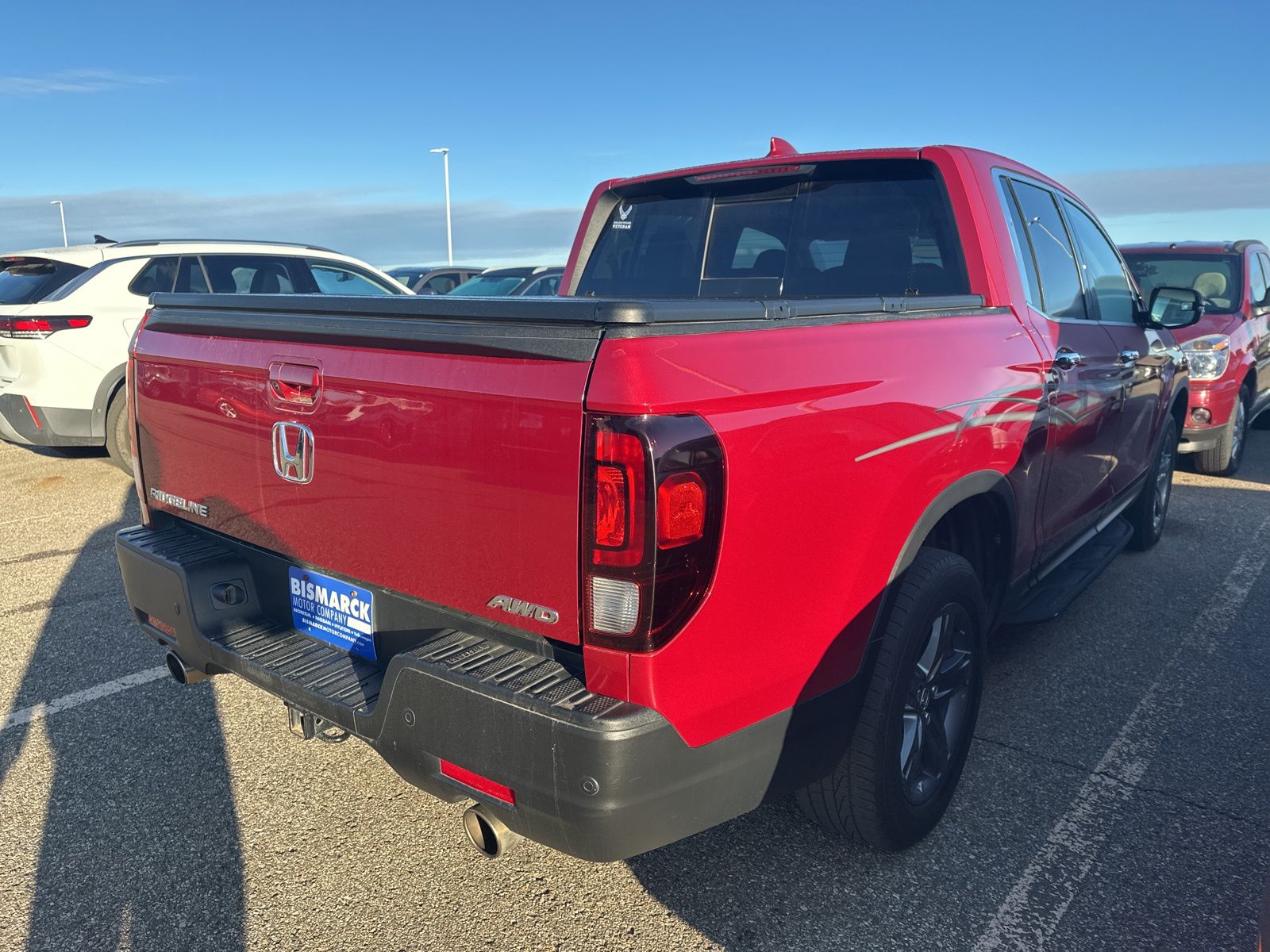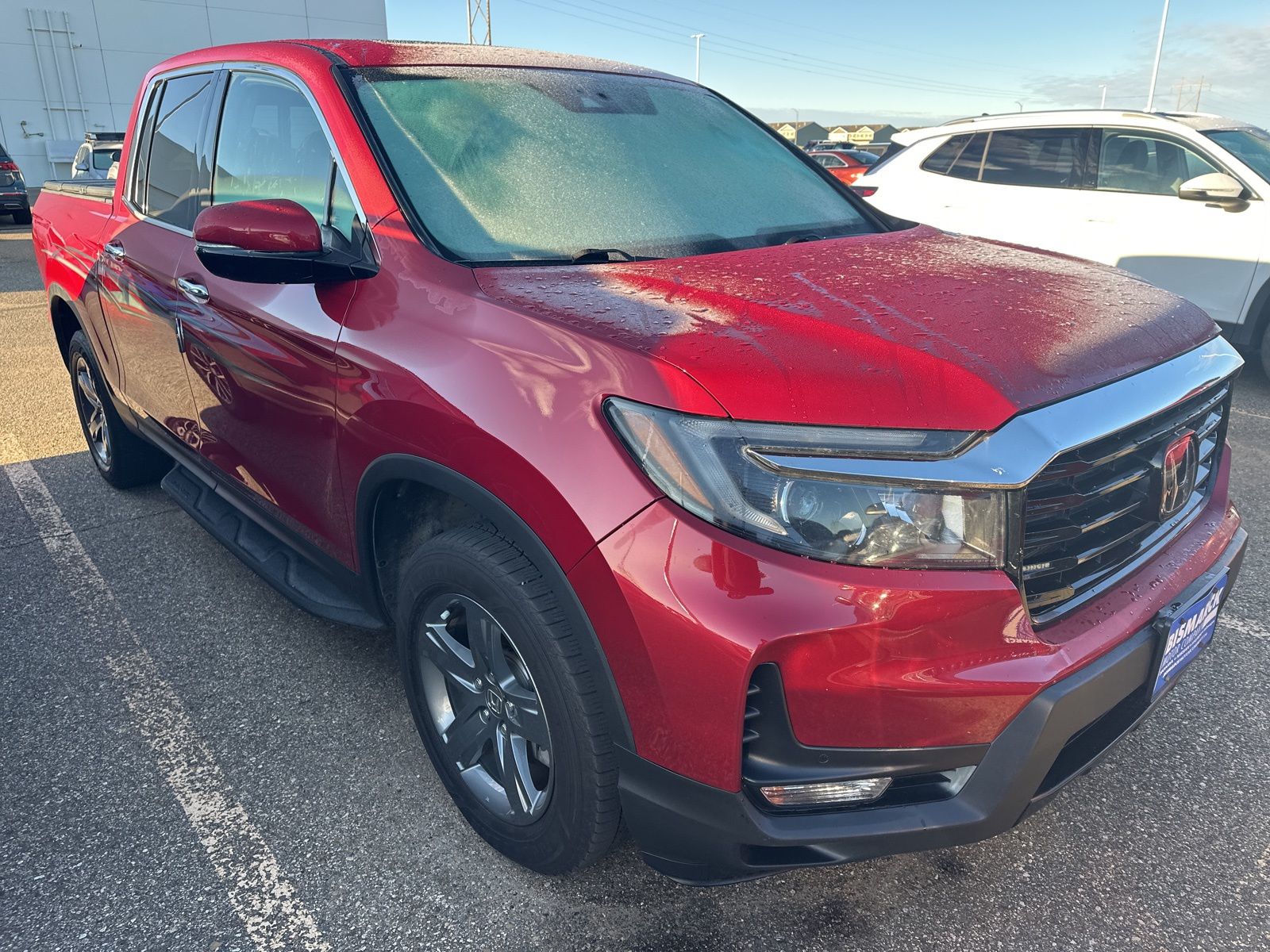 This 2023 Honda Ridgeline RTL-E in striking red delivers rugged capability with upscale comfort, showing 114,572 miles. Powered by a 3.5L V6 engine paired with a 9-speed automatic transmission and all-wheel drive, it offers strong performance and an estimated 18 MPG city / 24 MPG highway. The interior features leather-trimmed seats, heated front seats, a power moonroof, an 8-inch touchscreen with Apple CarPlay and Android Auto, and a premium audio system. Safety features include Honda Sensing with adaptive cruise control, lane keeping assist, collision mitigation braking, and blind spot information for added confidence on every drive.