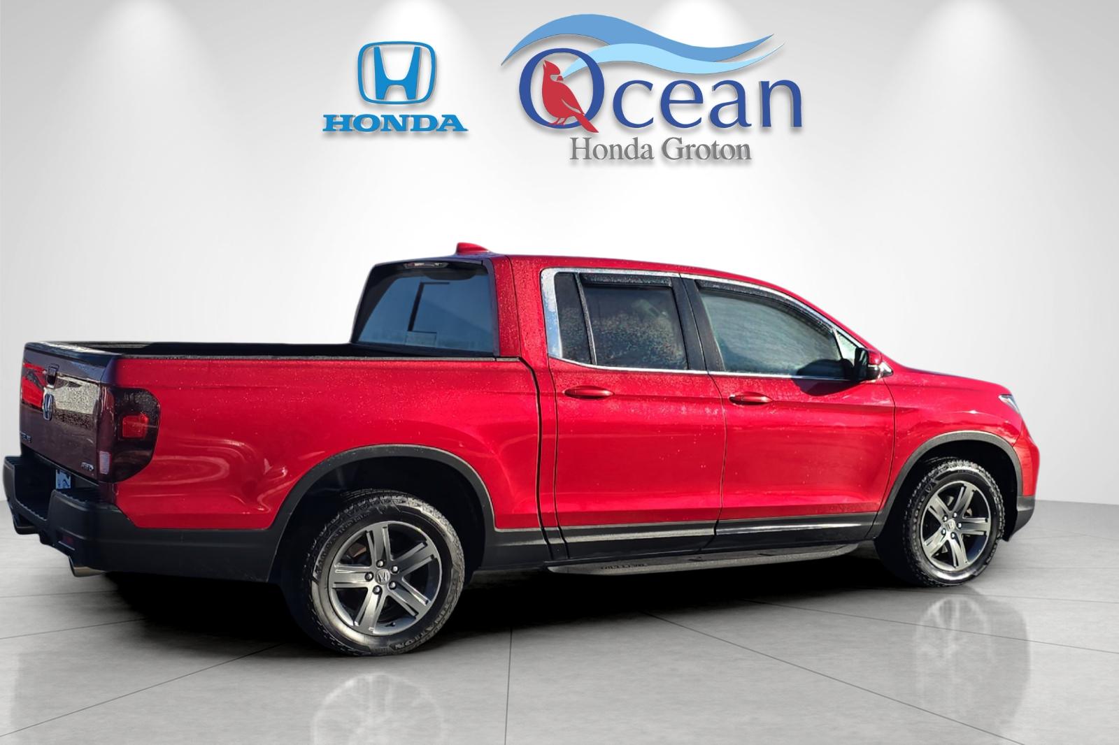 This off lease 2023 Honda Ridgeline was recently traded/acquired to our store here in Groton! 2023 Honda Ridgeline RTL in Radiant Red. 3.5L v6 Engine with 9-speed automatic transmission, AWD, 5FPYK3F57PB010108. Clean Carfax / local trade with 27182 miles. One owner clean Carfax, former employee, dealer maintained its entire life. Towing up to 5K lbs, 5 foot bed with the hidden trunk in the bed with dual action tailgate. Ridgeline RTL, 4D Crew Cab, 3.5L V6 SOHC i-VTEC 24V, 9-Speed Automatic, AWD, Radiant Red Metallic II, Black w/Leather Seat Trim. Clean Carfax. We just completed our Victory 182 point inspection, verified all systems, topped fluids and completed a full detail. Two keys included. Recent service shows oil and filter change, tire rotation, cardoc connect installation, and a full detail. This beauty has had and passed an extensive Victory 182-point inspection conducted by our factory certified technicians. Buy with confidence. Every Victory Pre Owned vehicle includes a 90 day or 3,000 mile comprehensive warranty on top of any remaining factory coverage. CarDoc Connect plus Anti Theft vehicle health scans | scheduled maintenance reminders | easy access to open recall info | convenient online service scheduling. Ownership includes our Car Doc maintenance plan with 6 complimentary oil changes and 6 complimentary tire rotations during the first two years. You can upgrade to a 3 year or 5 year Car Doc for added protection and perks. We are in the business of building relationships, not just selling vehicles. Whether you have good credit, bad credit or no credit. Get Pre Approved Today at: https://www.oceanhondagroton.com/finance/get-pre-approved/ Thinking about trading? We will pay up to 125 percent of book value after on site inspection. Financing available through more than 40 lenders. We accept all credit applications. Text us and we will send you a personalized video in under 5 minutes. This vehicle will not last long at this price! We are a large used car super store serving Groton, Mystic, New London, Norwich, Westerly, and Stonington. Do not waste any time, call us now at 860-446-7988. Please chat, email, text or call to verify any information in question and to schedule your product preview!