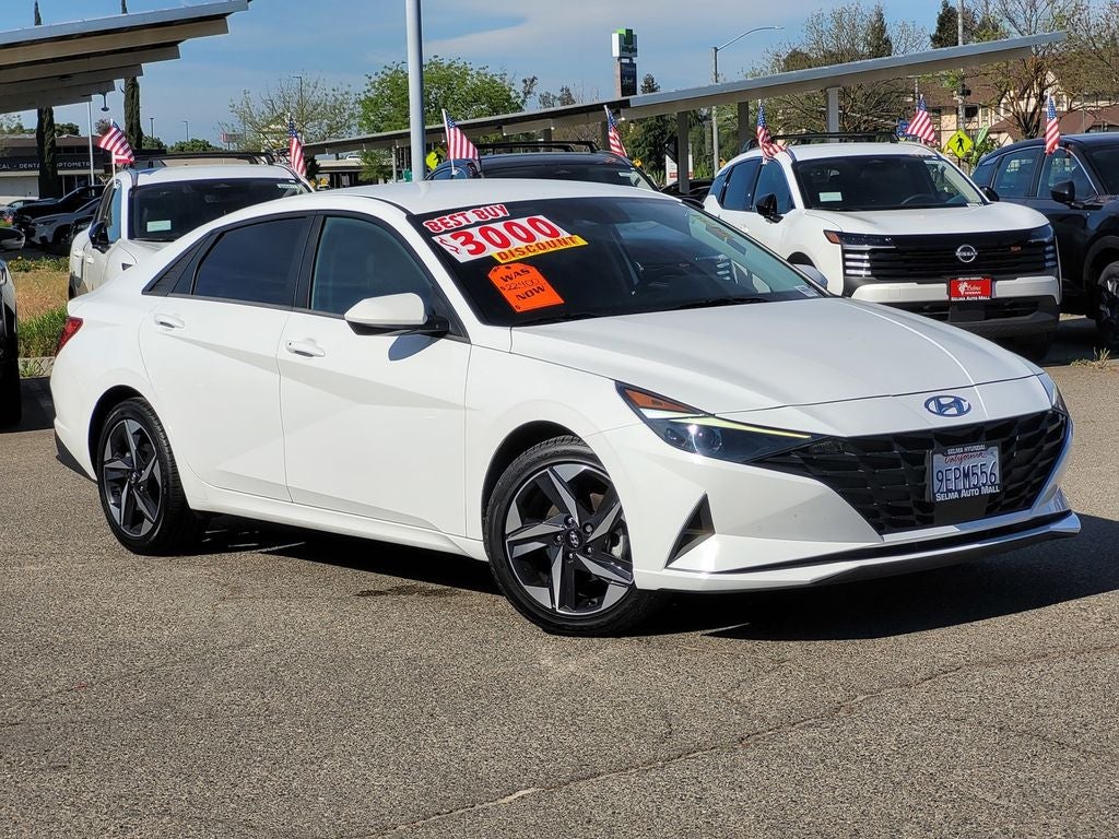 CARFAX One-Owner. Clean CARFAX. Serenity White Pearl 2023 Hyundai Elantra SEL FWD CVT I4. Su distribuidor #1 de autos usados en Selma. Con financiamiento fácil y los precios mas bajos en todo el Valle Central. Convenience Package, 16 x 6.5J Alloy Wheels, 4-Wheel Disc Brakes, 6 Speakers, ABS brakes, Air Conditioning, Alloy wheels, AM/FM radio: SiriusXM, Apple CarPlay & Android Auto, Auto High-beam Headlights, Automatic temperature control, Brake assist, Bumpers: body-color, Cargo Net, Carpeted Floor Mats, Cloth Seat Trim, Delay-off headlights, Driver door bin, Driver vanity mirror, Dual front impact airbags, Dual front side impact airbags, Electronic Stability Control, Emergency communication system: Blue Link Connected Car Service (3-year complimentary subscription), Exterior Parking Camera Rear, Front anti-roll bar, Front Bucket Seats, Front Center Armrest, Front dual zone A/C, Front reading lights, Front wheel independent suspension, Fully automatic headlights, Illuminated entry, Low tire pressure warning, Occupant sensing airbag, Outside temperature display, Overhead airbag, Overhead console, Panic alarm, Passenger door bin, Passenger vanity mirror, Power door mirrors, Power steering, Power windows, Radio: AM/FM/HD/SiriusXM Display Audio, Rear window defroster, Remote keyless entry, Reversible Cargo Tray, Security system, Speed control, Speed-sensing steering, Steering wheel mounted audio controls, Tachometer, Telescoping steering wheel, Tilt steering wheel, Traction control, Trip computer, Variably intermittent wipers, and Wheel Locks. 30/40 City/Highway MPG. Located in the Massive Selma Auto Mall! We are only minutes away from anywhere in the central valley.