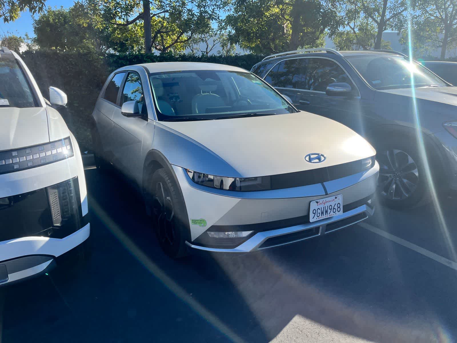 2023 Hyundai IONIQ 5 Gravity Gold (Matte Gold) 1-Speed Automatic Electric Motor Android Auto, Apple Car Play & Android Auto, Backup Camera, Bluetooth, CarPlay, Dual Powered Seats, Heated Seats, Keyless Entry, Leather Seats, Navigation System, Parking Sensors, Power Liftgate, Powered Driver Seat, Premium Sound System, Premium Wheels, Sunroof/Moonroof, USB Port, IONIQ 5 SEL, 4D Sport Utility, Electric Motor, 1-Speed Automatic, AWD, Gravity Gold (Matte Gold), Gray Artificial Leather. 113/90 City/Highway MPG CARFAX One-Owner. Clean CARFAX. Financing available on approved credit. Trade-ins accepted. All Vehicles are subject to prior sale. All Pricing and Advertised Prices for any/all vehicles offered for sale does not include dealer installed accessories which can be purchased for an additional cost. Images, prices, and options shown, including vehicle color, trim, options, pricing and other specifications are subject to availability, incentive offerings, current pricing and credit worthiness. Images are for illustrative purposes only.