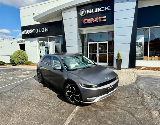 Odometer is 5082 miles below market average! Carfax One-Owner. Shooting Star (Matte Gray) 2023 Hyundai IONIQ 5 SEL 4D Sport Utility AWD 1-Speed Automatic Electric Motor 113/90 City/Highway MPG. Family owned and operated since 1949, Brustolon Buick GMC has made 100% customer satisfaction our priority! Our staff makes purchasing a pre-owned vehicle an enjoyable experience. Visit Brustolon Buick GMC in Mystic, CT and see for yourself! At Brustolon Buick GMC, our goal is to deliver vehicles that will provide years of reliable use. Every vehicle is fully inspected by our factory trained Service technicians, and reconditioned to factory maintenance specifications. Call the Brustolon Buick GMC Sales Department at 860-415-4738 prompt #1, to speak with a member of our team to schedule your test drive today!