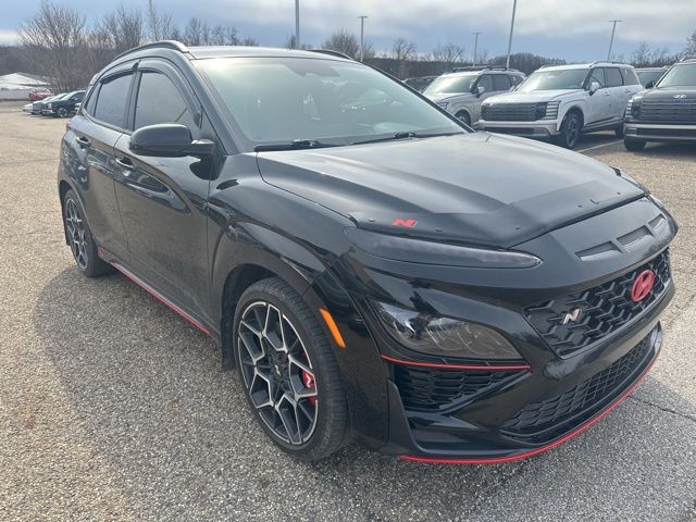 Why buy from Ron Marhofer Hyundai of Green? We offer 3 day/400 mile exchange policy on our pre-owned vehicles. Additionally, we offer free home delivery up to 150 miles from the dealership. This excludes electric vehicles. Shop online, over the phone, or at the dealership...your choice! Please see our website at hyundaiofohio.com for details. Ron Marhofer Hyundai of Green has a large selection of pre-owned cars, trucks and SUVâs. Each vehicle is thoroughly inspected and marked with our best, no hassle price up front. 2023 Ultra Black Hyundai Kona N 2.0L I4 DGI DOHC 16V Turbocharged 20/27 City/Highway MPG.