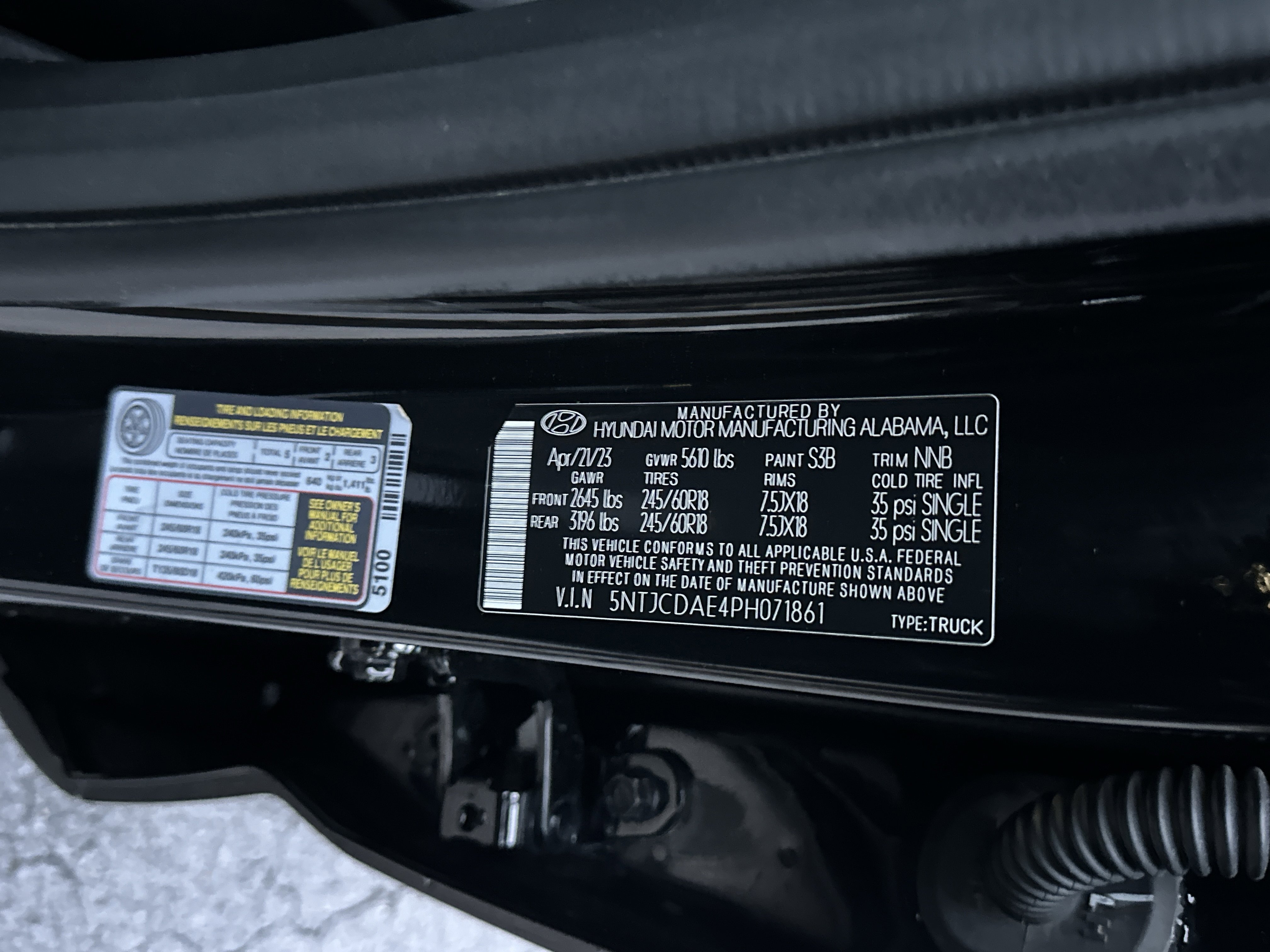 VIN: 5NTJCDAE4PH071861