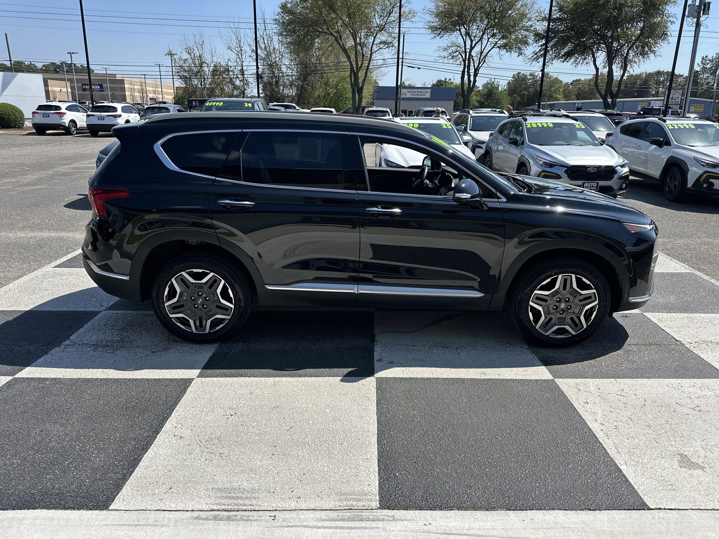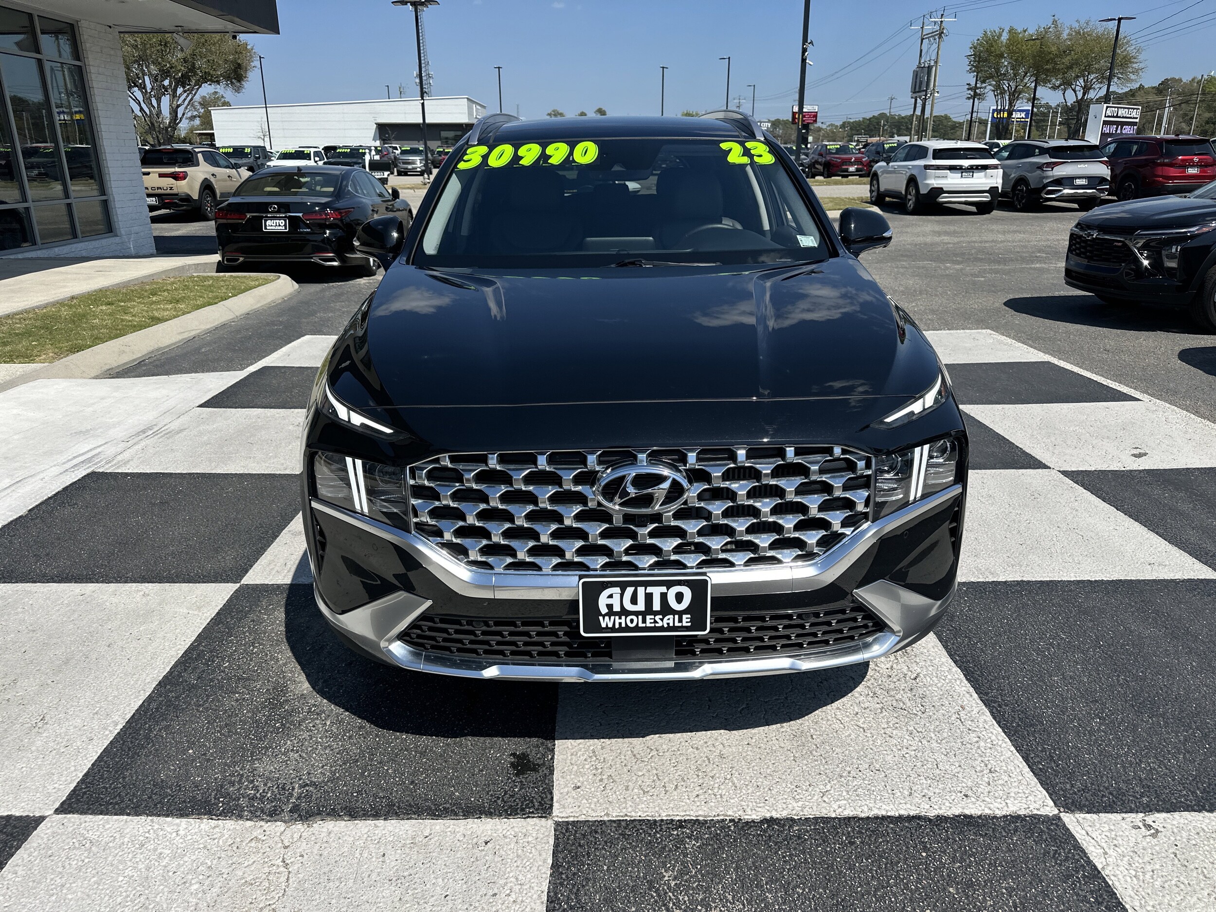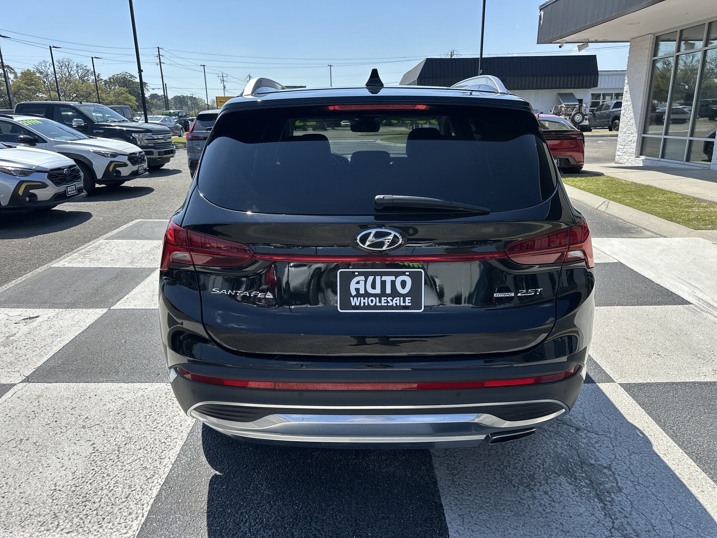 Only 23,197 Miles! Delivers 28 Highway MPG and 21 City MPG! This Hyundai Santa Fe delivers an intercooled turbo regular unleaded I-4 2.5 L/152 engine powering this automatic transmission. Wheel locks, Twilight Black, Option Group 01 -inc: standard equipment. This Hyundai Santa Fe comes equipped with these options: Gray, leather seat trim, first aid kit, carpeted floor mats, cargo tray, cargo net, cargo cover/screen, all season fitted liners, Wireless Phone Connectivity, wheels: 19" x 7.5J Alloy. Visit us today. Test drive this must-see, must-drive, must-own beauty today at Auto Wholesale, 6003 Market St, Wilmington, NC 28405.