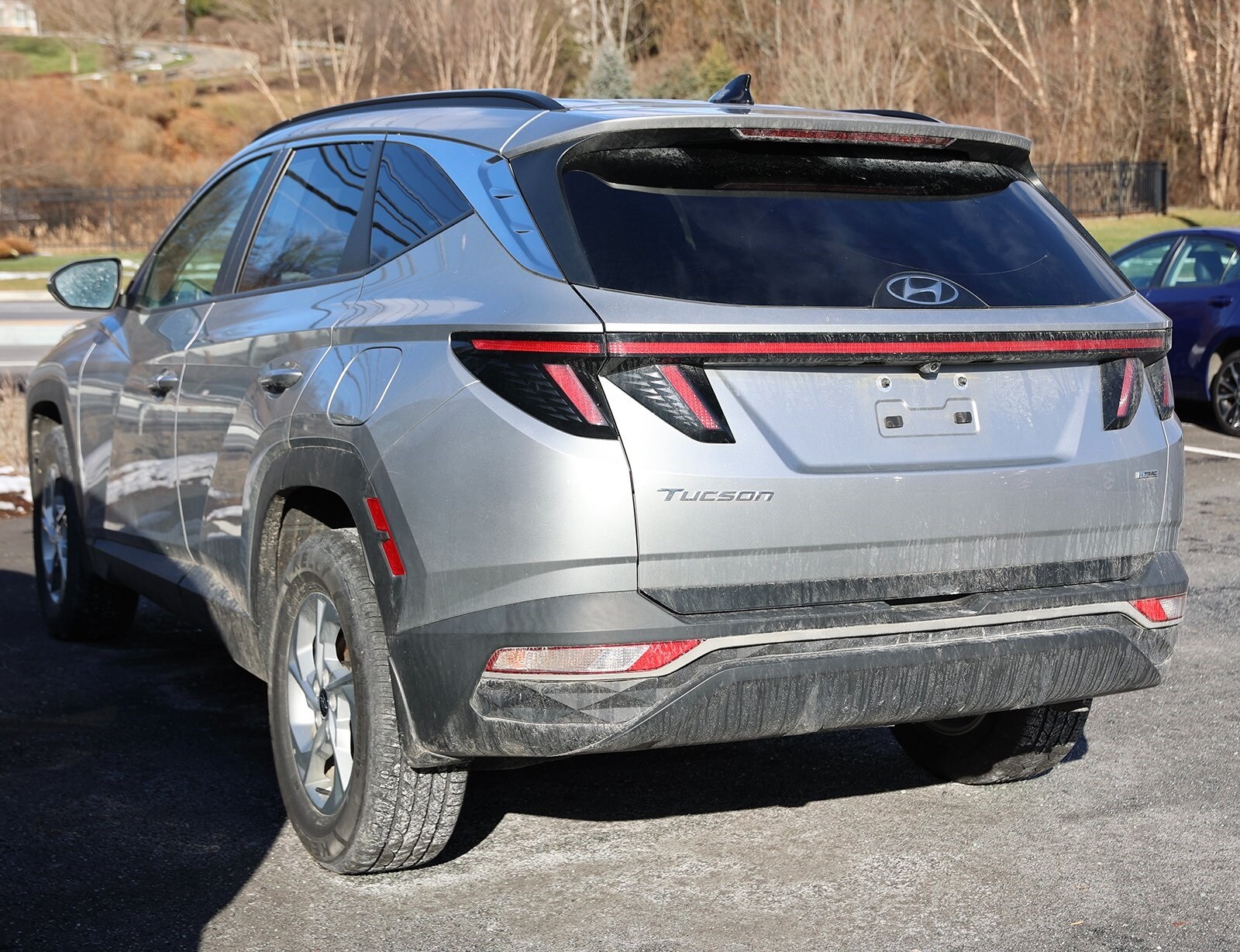 Shimmering Silver 2023 Hyundai Tucson SEL AWD 8-Speed Automatic with SHIFTRONIC 2.5L I4 DGI DOHC 16V LEV3-ULEV70 187hp Fresh Oil Change, 3.648 Axle Ratio, 4-Wheel Disc Brakes, 6 Speakers, ABS brakes, Air Conditioning, Alloy wheels, AM/FM radio: SiriusXM, Apple CarPlay & Android Auto, Auto High-beam Headlights, Brake assist, Bumpers: body-color, Cargo Cover, Cargo Tray, Carpeted Floor Mats, Delay-off headlights, Driver door bin, Driver vanity mirror, Dual front impact airbags, Dual front side impact airbags, Electronic Stability Control, Emergency communication system: Blue Link Connected Car Service (3-year complimentary subscription), First Aid Kit, Four wheel independent suspension, Front and Rear Mudguards, Front anti-roll bar, Front Bucket Seats, Front Center Armrest, Front reading lights, Fully automatic headlights, H-Tex Seat Trim, Heated door mirrors, Heated Front Bucket Seats, Heated front seats, Illuminated entry, Low tire pressure warning, Occupant sensing airbag, Option Group 01, Outside temperature display, Overhead airbag, Overhead console, Panic alarm, Passenger door bin, Passenger vanity mirror, Power door mirrors, Power driver seat, Power Liftgate, Power steering, Power windows, Radio data system, Radio: AM/FM/HD/SiriusXM Audio System, Rear anti-roll bar, Rear seat center armrest, Rear window defroster, Rear window wiper, Remote keyless entry, Roof rack: rails only, Security system, Speed control, Split folding rear seat, Spoiler, Stain & Odor Resistant Cloth Seat Trim, Steering wheel mounted audio controls, Tachometer, Telescoping steering wheel, Tilt steering wheel, Traction control, Trip computer, Turn signal indicator mirrors, Variably intermittent wipers, Wheels: 17" x 7.0J" Alloy.