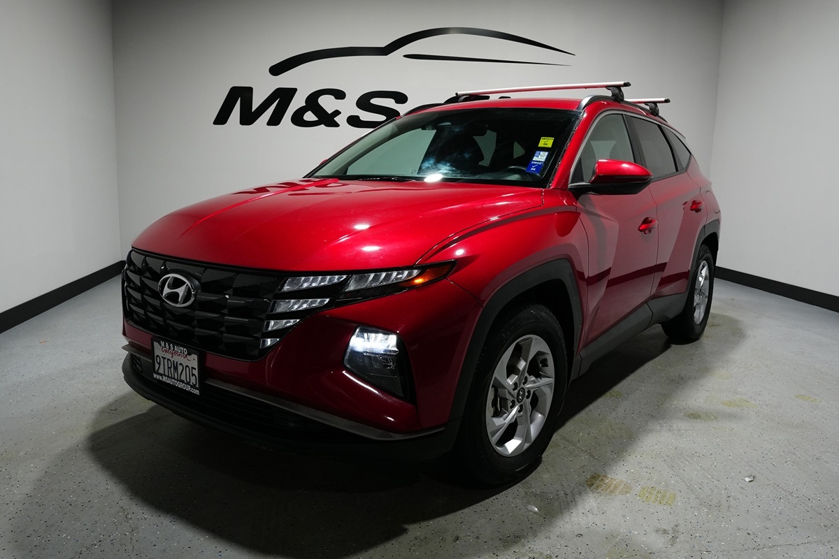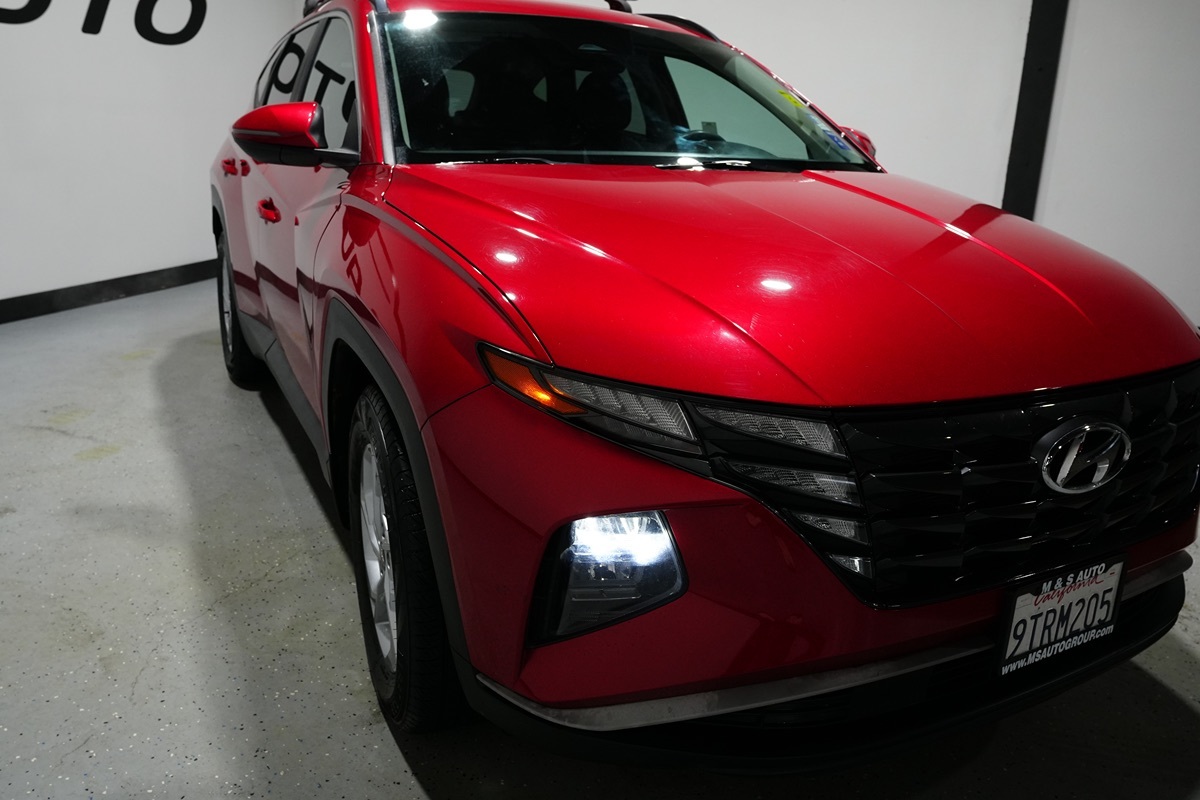 The 2023 Hyundai Tucson SEL FWD, showcased in an eye-catching Calypso Red, offers a blend of style and performance that stands out on the road. With the 2.5L 4-cylinder engine under the hood, this vehicle ensures a smooth and efficient driving experience, whether you're navigating city streets or embarking on a weekend getaway. The Gray interior complements the bold exterior, creating a sophisticated and inviting cabin space for both driver and passengers. Equipped with state-of-the-art technology, this Tucson prioritizes safety and convenience through features such as active cruise control, blind spot monitor, and forward collision warning. The lane departure warning and lane keep assist systems work seamlessly to help maintain your course on longer drives, further enhancing your peace of mind. For those colder days, heated seats provide an added layer of comfort, while the hands-free liftgate offers effortless access to the cargo area, making errands and adventures more manageable. Additional practical features include a towing package and roof rack cross rails, expanding the vehicle’s capability to haul both gear and goods. LED headlights illuminate your path with precision and style, while front and rear mudguards, carpeted floor mats, and a cargo tray protect the Tucson’s robust interior from wear and tear. Whether it’s the power liftgate or the convenient layout of the thoughtfully designed cabin, the Hyundai Tucson SEL FWD embodies a perfect mix of family-friendly functionality and modern flair.