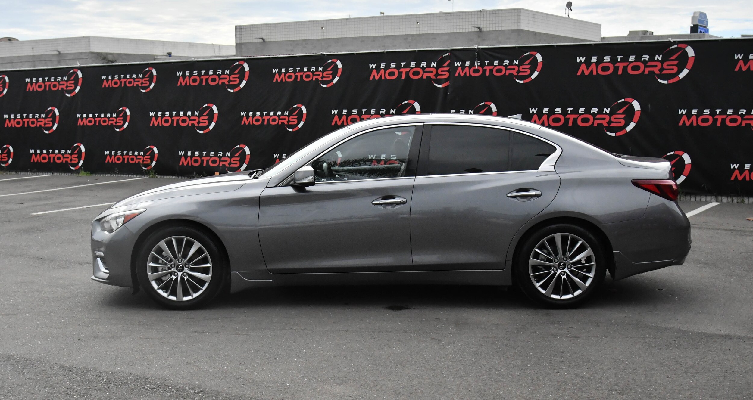Used 2023 INFINITI Q50 LUXE, located at Western Motors Merced. This sedan features a Graphite Shadow exterior and Saddle Brown interior. The vehicle offers a smooth drive with great gas mileage and a comfortable, stylish interior. It is equipped with advanced safety and convenience features, making it a dependable and enjoyable ride.