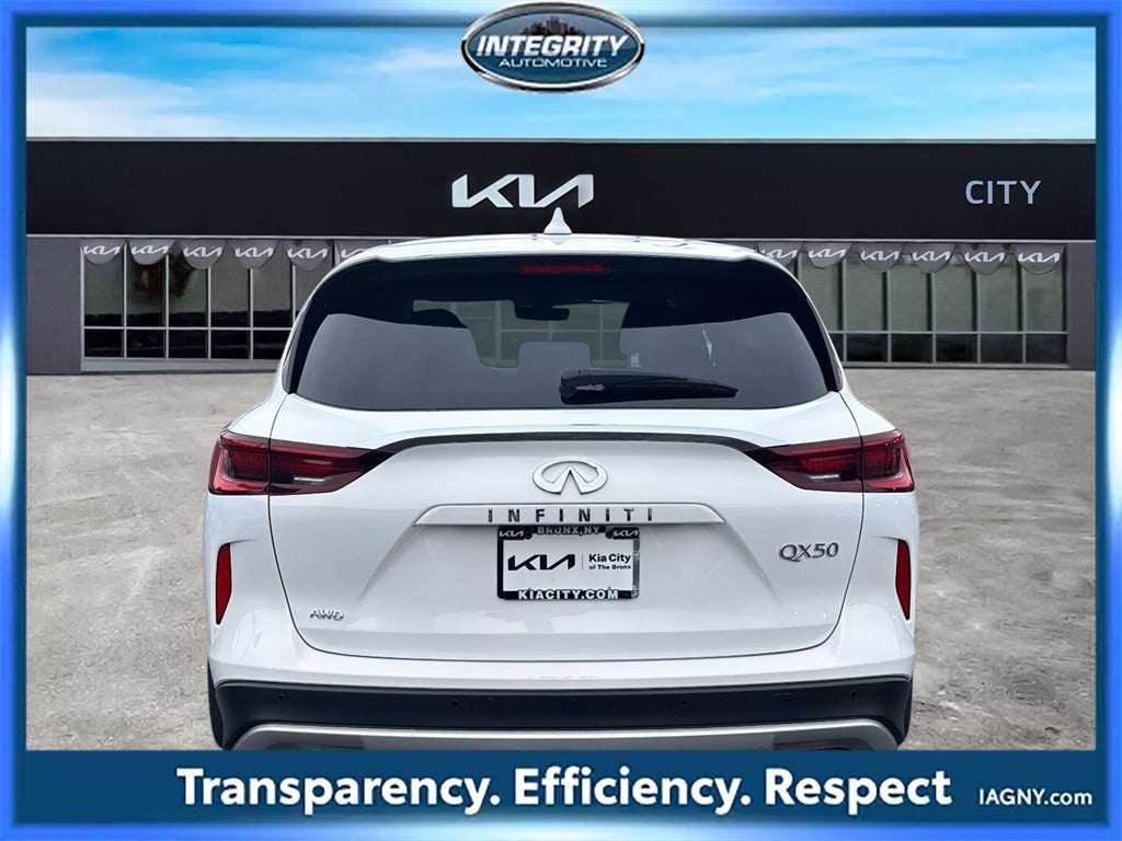 Our Service Department is located at 700 Waverly Ave, Mamaroneck, NY. Call 914-677-2854. Walk-ins welcome! CARFAX One-Owner. Lunar White 2023 INFINITI QX50 PURE 22/28 City/Highway MPG.