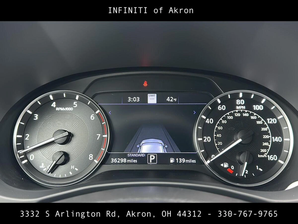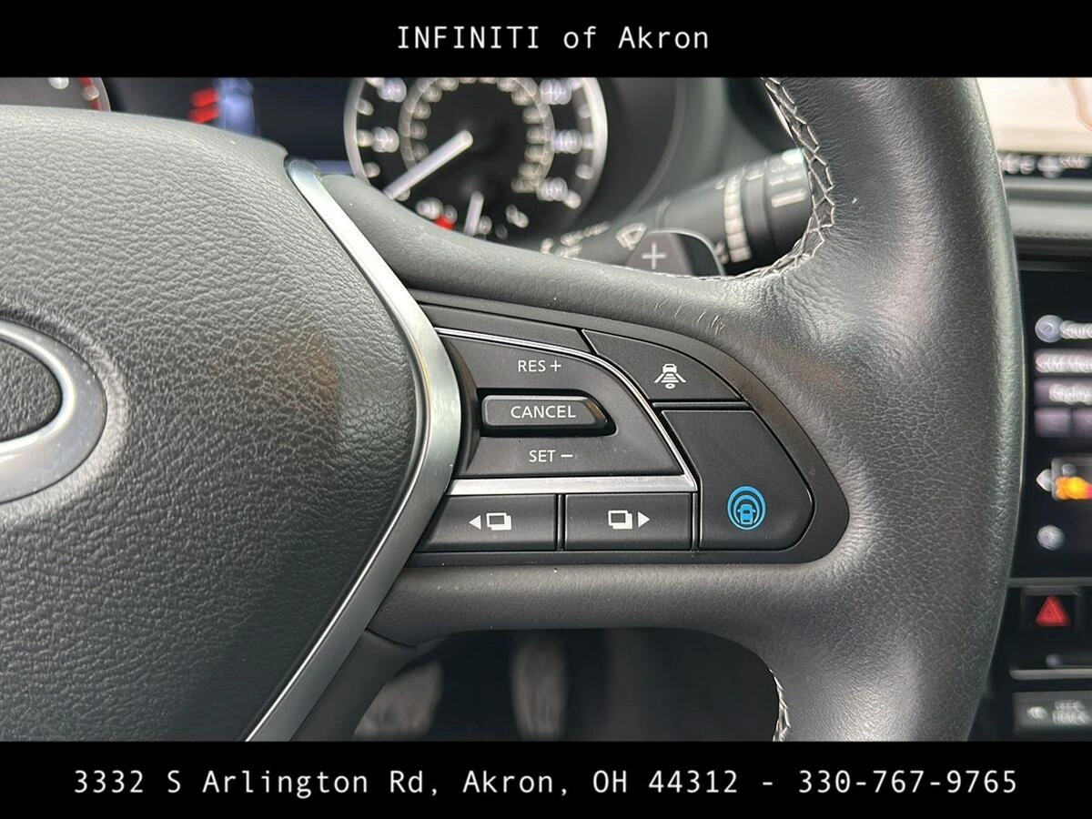 Discover the elegance and sophistication of the 2023 INFINITI QX50 Sport, a used SUV that combines dynamic performance with luxury. This model is cloaked in an exquisite Slate Gray exterior, complementing its sleek and muscular design, and features an upscale Graphite interior with semi-aniline leather-appointed seat trim, ensuring a refined driving experience. Under the hood, this INFINITI QX50 is powered by a responsive 4-cylinder engine coupled with a smooth Continuously Variable Transmission (CVT). The all-wheel-drive drivetrain offers enhanced control and stability, making it ideal for varying road conditions. Fuel efficiency is impressive, providing 22 MPG in the city and 28 MPG on the highway, balancing power with economic operation. This INFINITI QX50 Sport, with an odometer reading of 36,229 miles, promises reliability and has been well-maintained with a single owner and no accident history. Embrace the luxury and performance by visiting INFINITI of Akron, located at 3332 S Arlington Rd, Akron OH 44312, or call (330) 333-4601 to schedule a test drive today!